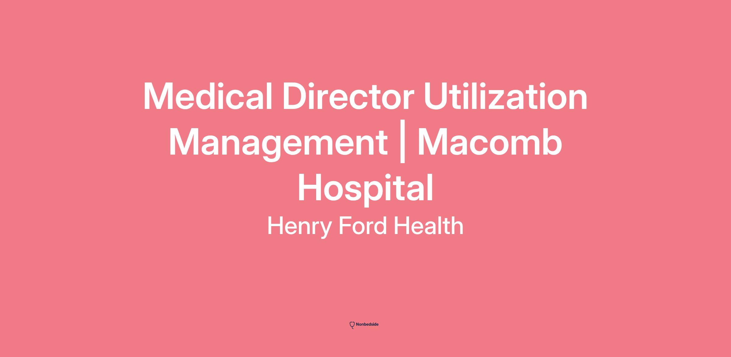 Overview The Medical Director of Utilization Management shall have responsibility for the medical oversight of activities related to Henry Ford Macomb Hospital (HFMH) inpatient resources including appropriateness of admissions, payer grids, patient status assignments, and continued stays of inpatients.