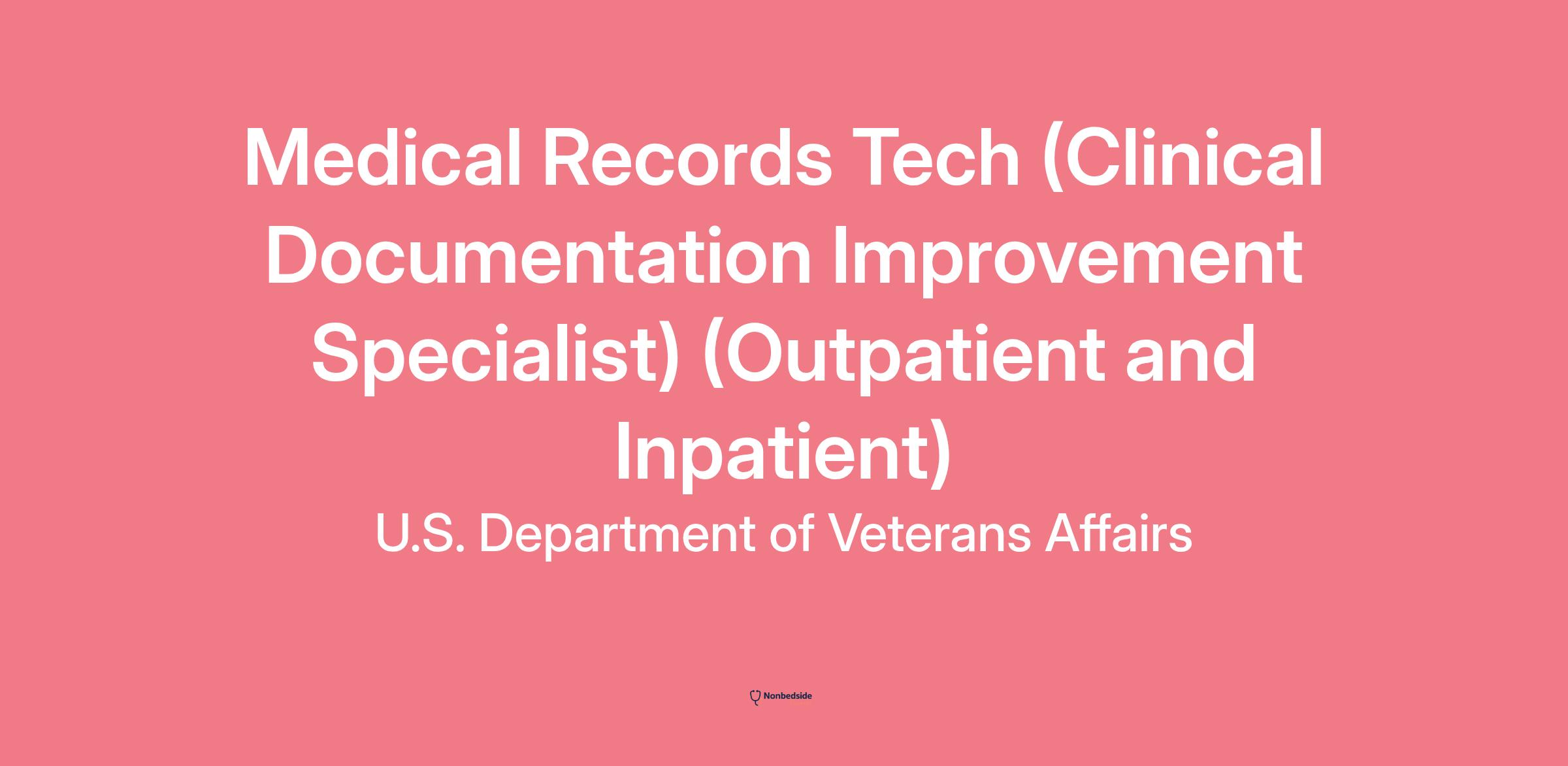 Join to apply for the Medical Records Tech (Clinical Documentation Improvement Specialist) (Outpatient and Inpatient) role at U.S. Department of Veterans Affairs