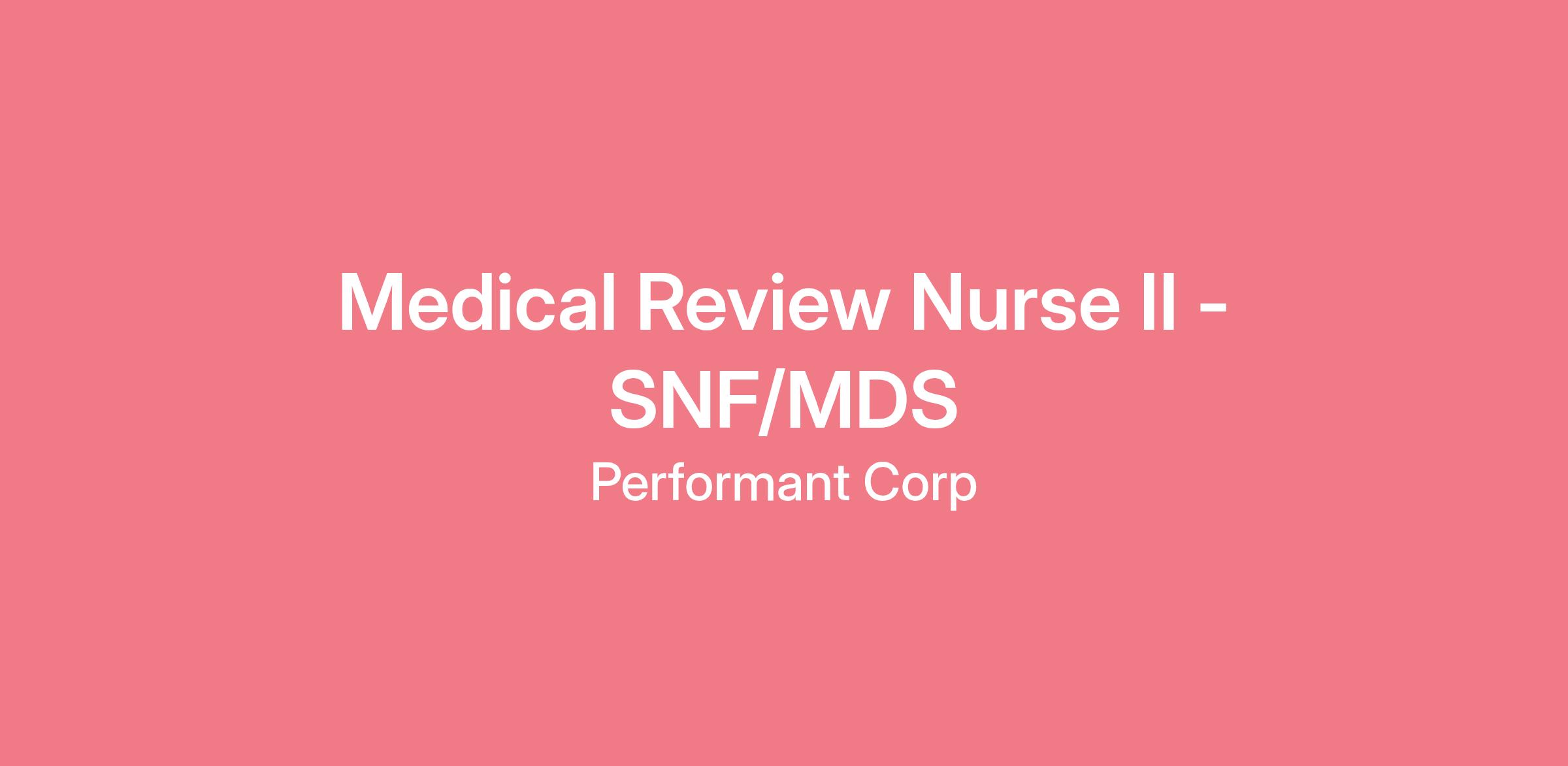 Hiring Range: $75,000 - $84,000The Medical Review Nurse II - SNF/MDS primarily performs medical claims audit reviews. As a MR Nurse, you will join a team of experienced medical auditors and coders performing retrospective and prepayment audits on claims for Government and Commercial Payers. You will work remotely in a fast paced and dynamic environment and be part of a multi-location team.