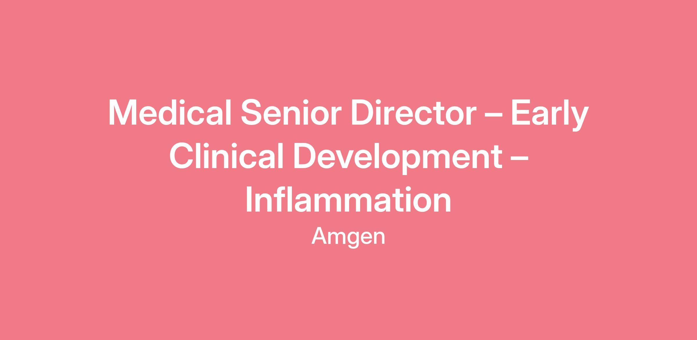 Let’s do this. Let’s change the world. Amgen Early Development is looking for a strong scientific leader in Early Clinical Development. In this vital role you will be responsible for providing scientific and medical direction and leadership for pre-clinical/early clinical programs for Amgen’s Inflammation/General Medicine Early Development pipeline. This Early Development Leader will develop strategy for and oversee the early phase clinical development of therapeutic candidates from first-in-man studies through proof of concept and translational projects as part of the initial drug development strategy.