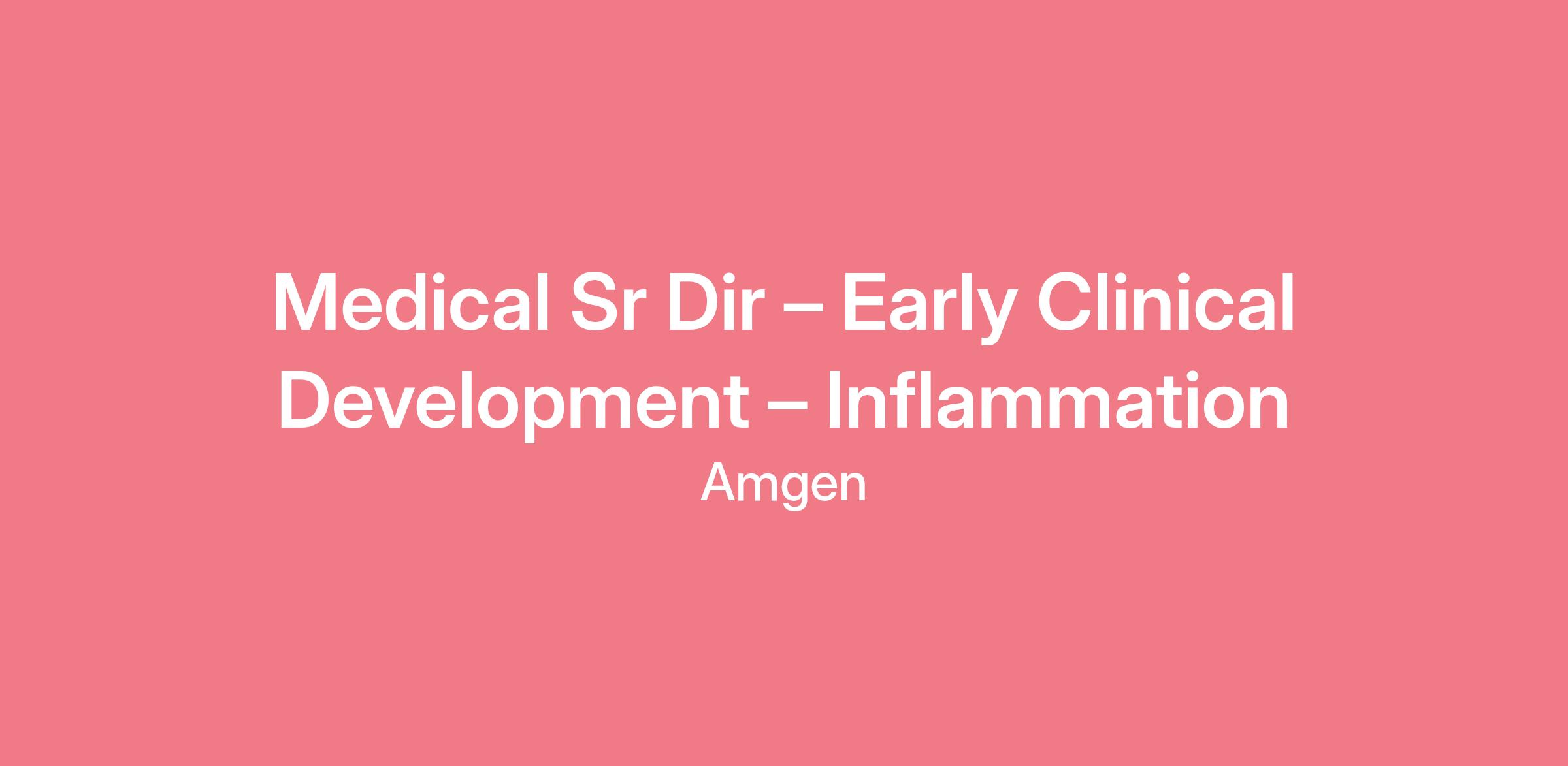 Let’s do this. Let’s change the world. Amgen Early Development is looking for a strong scientific leader in Early Clinical Development. In this vital role you will be responsible for providing scientific and medical direction and leadership for pre-clinical/early clinical programs for Amgen’s Inflammation/General Medicine Early Development pipeline. This Early Development Leader will develop strategy for and oversee the early phase clinical development of therapeutic candidates from first-in-man studies through proof of concept and translational projects as part of the initial drug development strategy.
