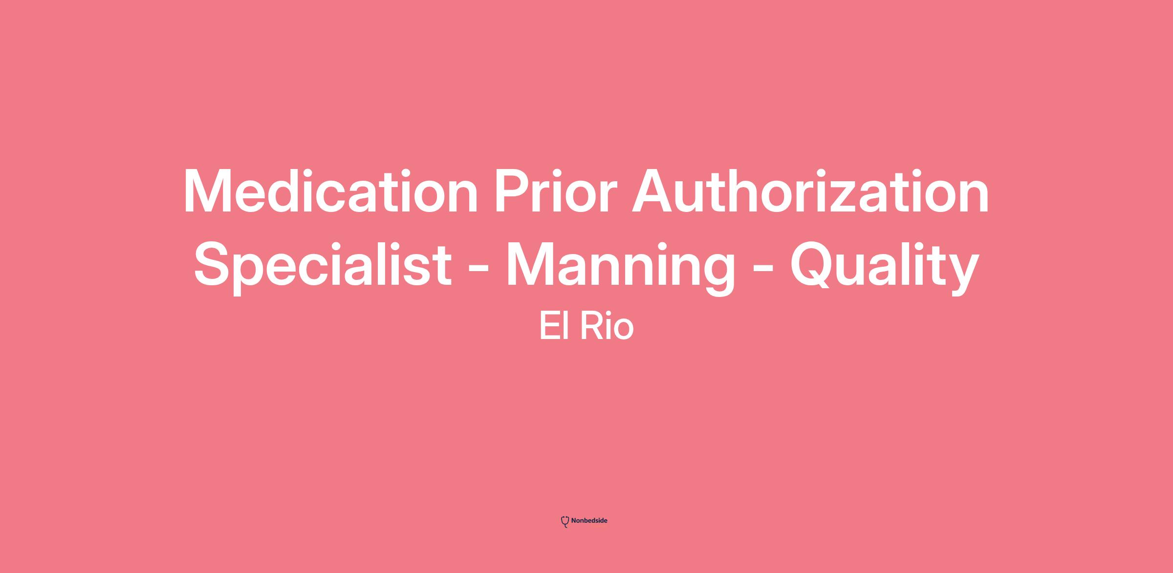 Acts as an informational contact point for El Rio’s Quality & Innovation Team in relation to Medication Prior Authorizations, supporting payors toward timely resolution.
