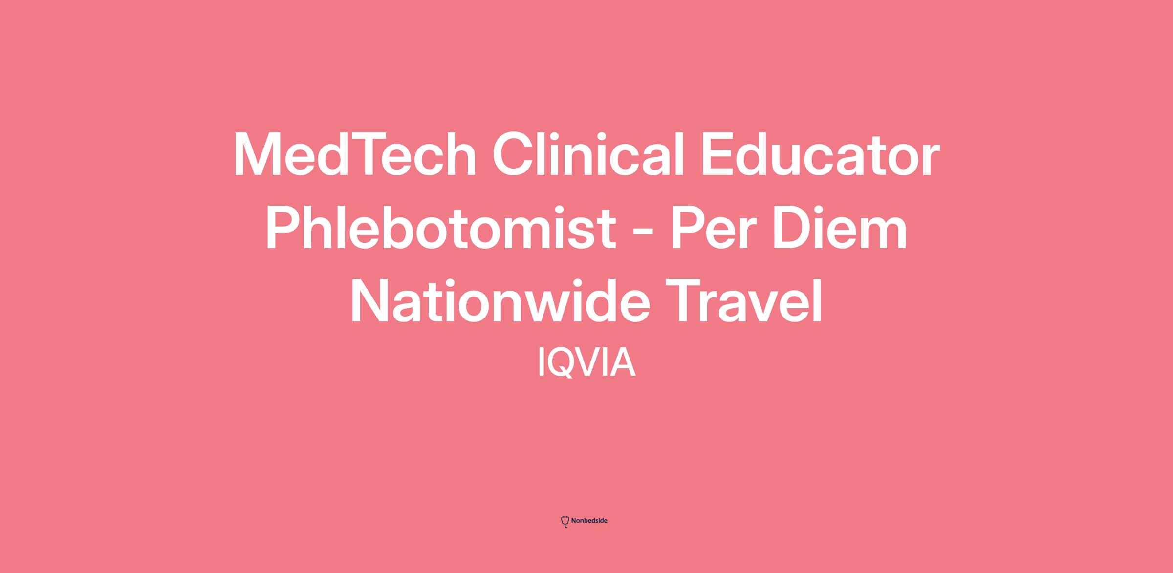 MedTech Clinical Educator Phlebotomist - Per Diem Nationwide Travel