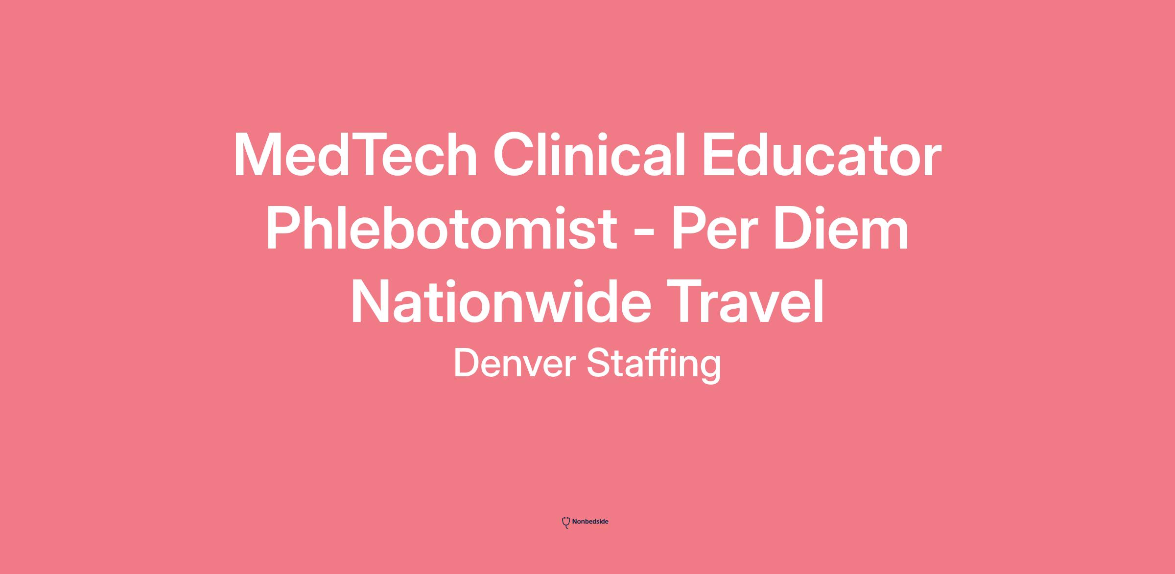 MedTech Clinical Educator Phlebotomist - Per Diem Nationwide Travel