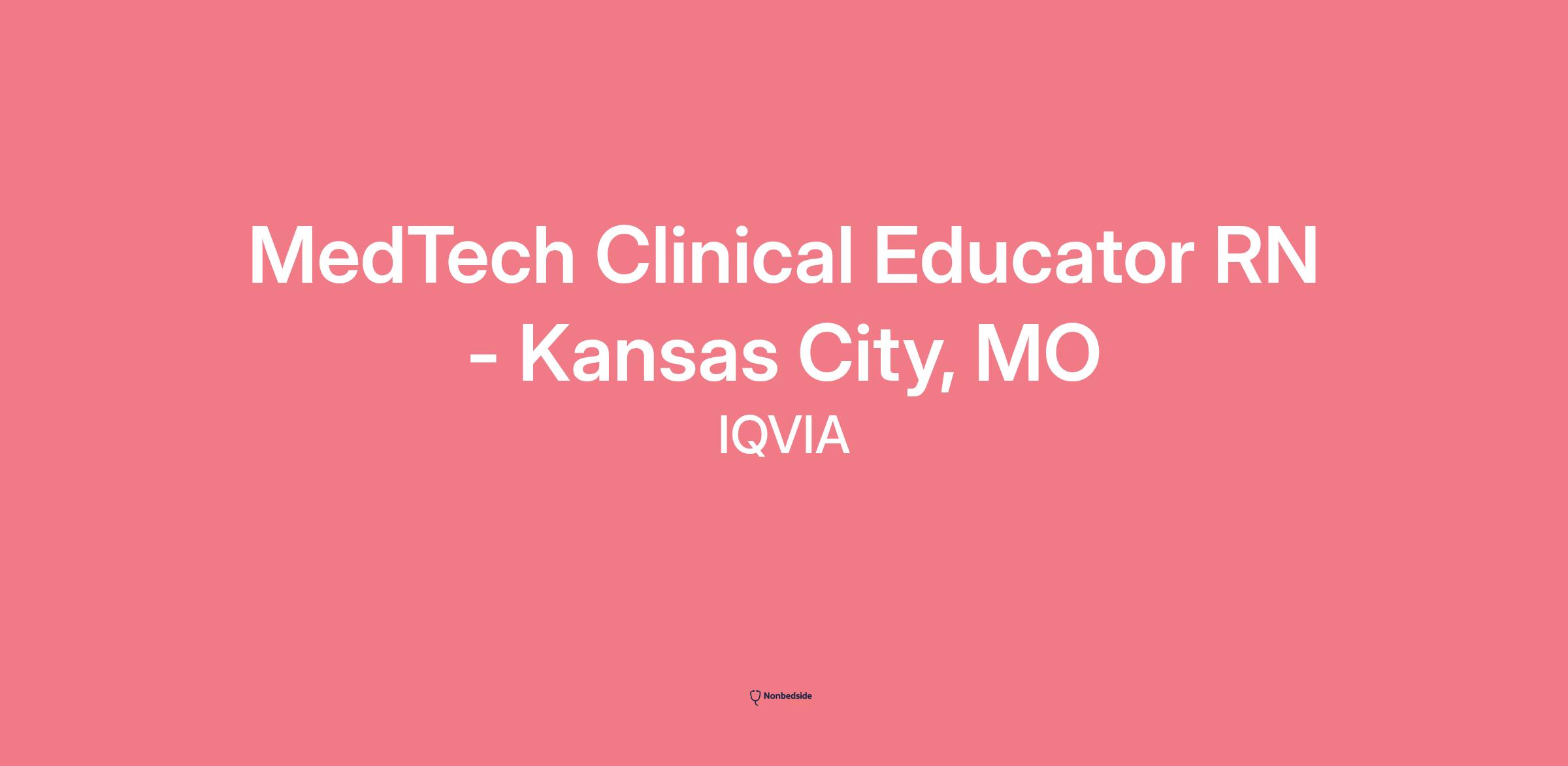 MedTech Clinical Educator RN - Kansas City, MO Join to apply for the MedTech Clinical Educator RN - Kansas City, MO role at IQVIA .