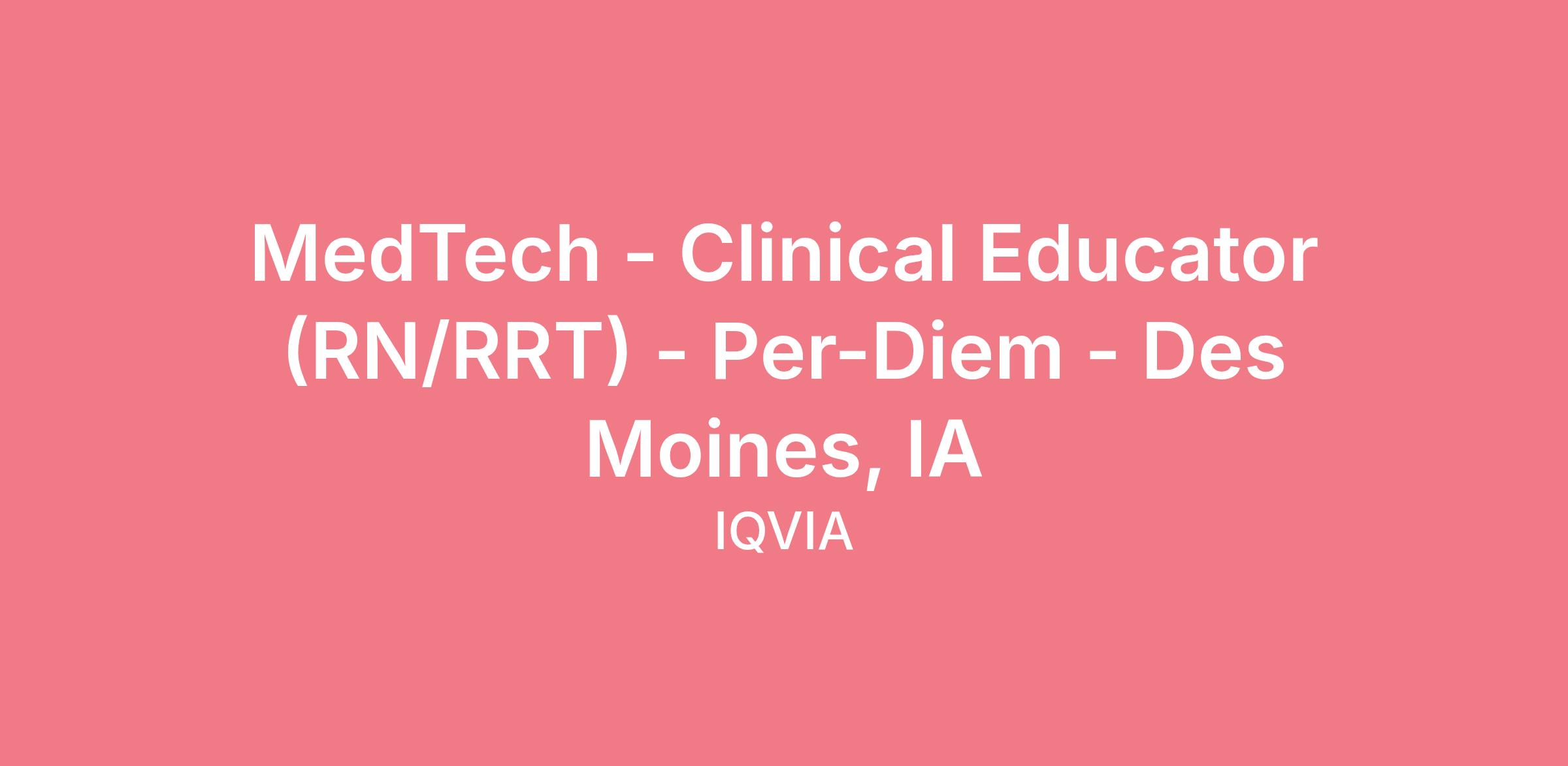 MedTech - Clinical Educator (RN/RRT) - Per-Diem - Des Moines, IA