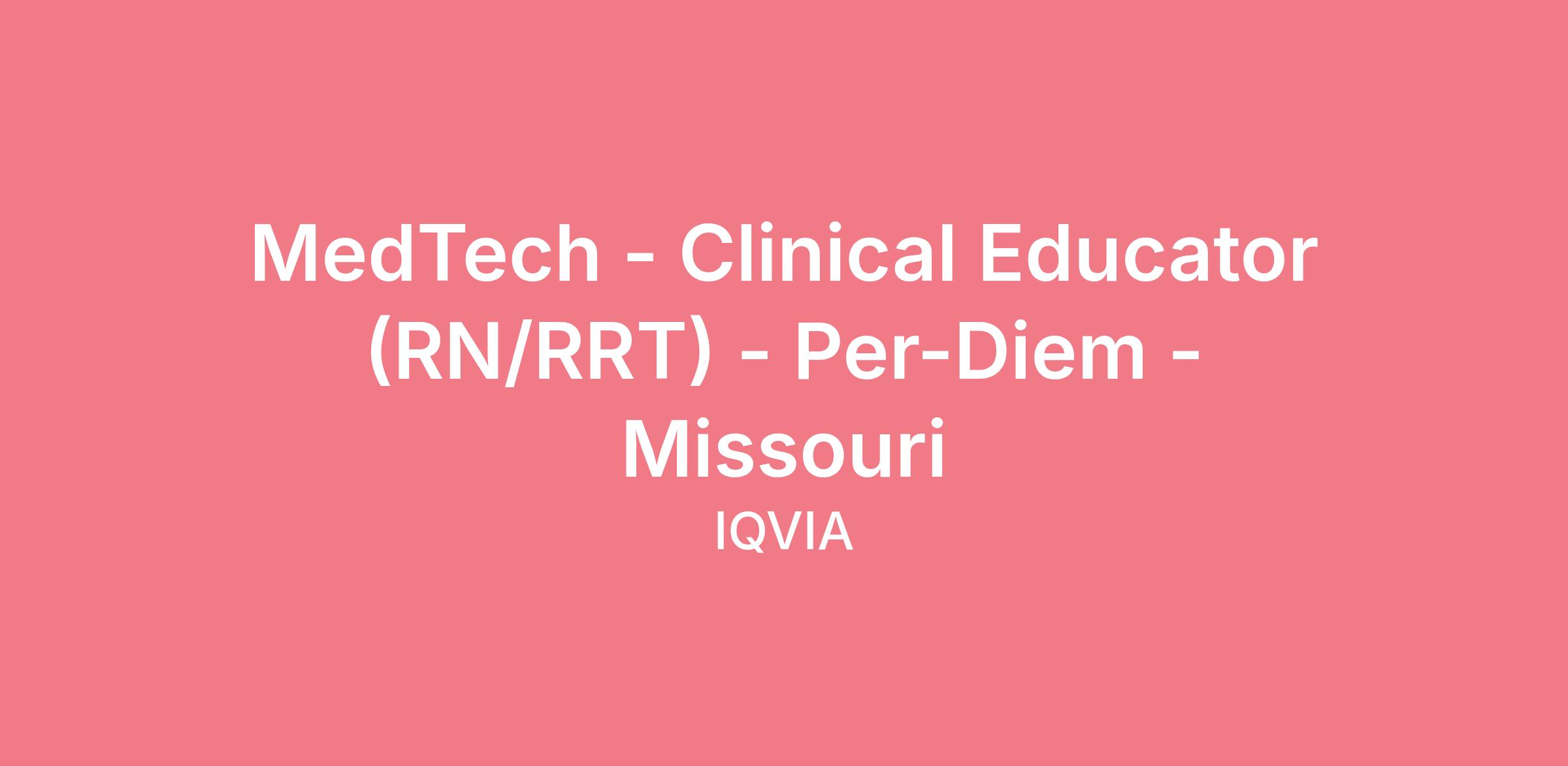 MedTech - Clinical Educator (RN/RRT) - Per-Diem - Missouri