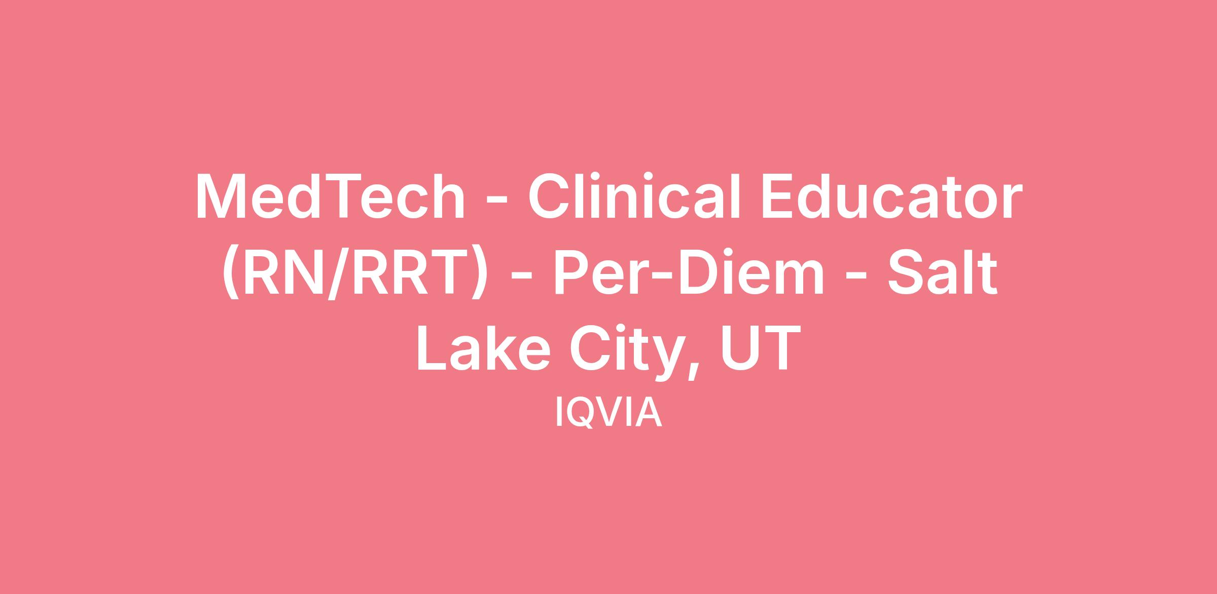 MedTech - Clinical Educator (RN/RRT) - Per-Diem - Salt Lake City, UT