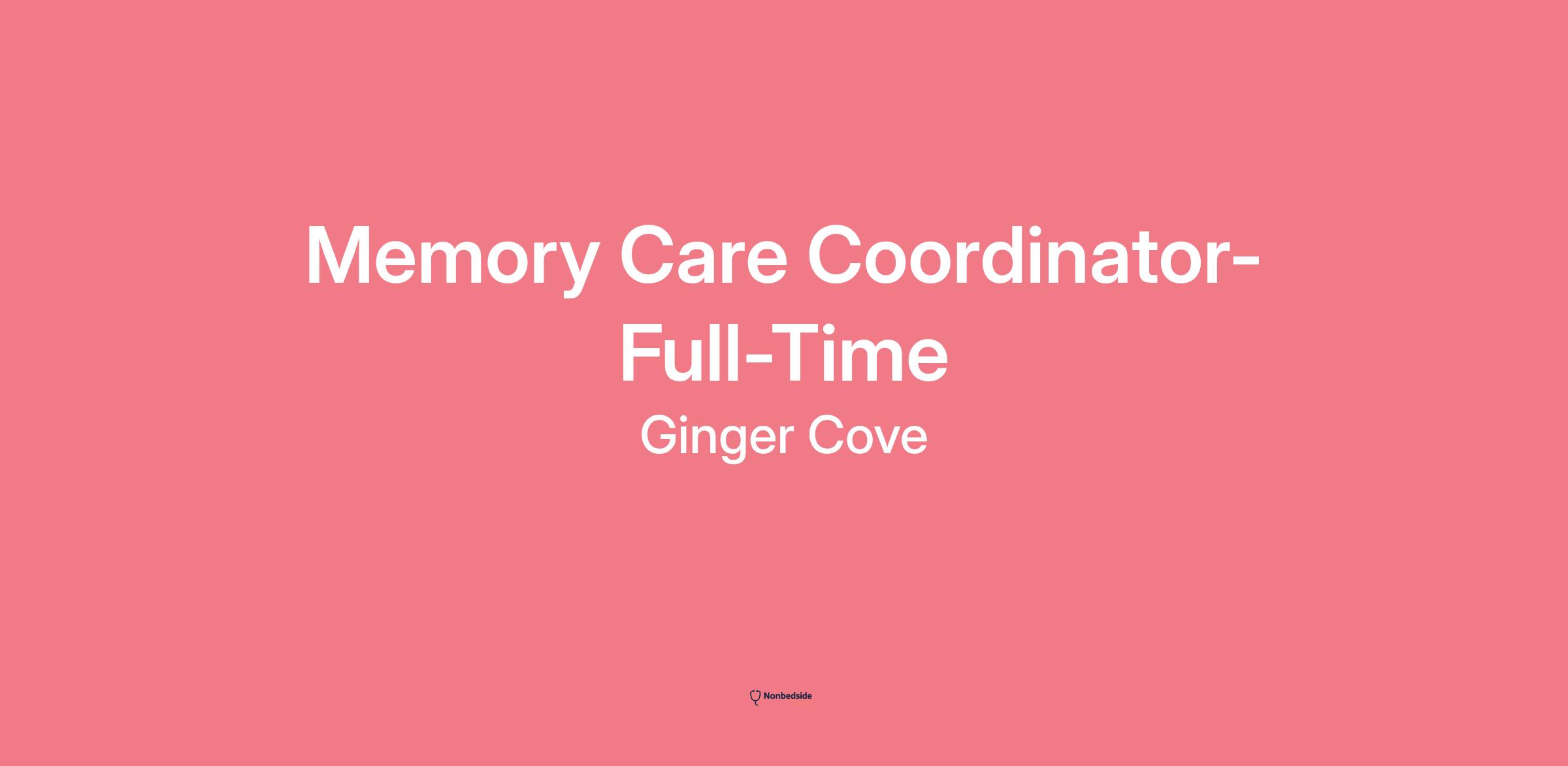 Ginger Cove is currently seeking a Full-Time Memory Care Coordinator. The Memory Care Coordinator is responsible for working in accordance with established policies and procedures, and/or specific instruction from the Director of Social Services and Wellness. Responsible for planning, organizing, and overseeing all aspects of the Memory Care program to ensure high-quality, person-centered care for residents living with dementia and related cognitive impairments. This role includes leadership, staff training, family support, and the development of engaging, meaningful programming that promotes residents' well-being and dignity.