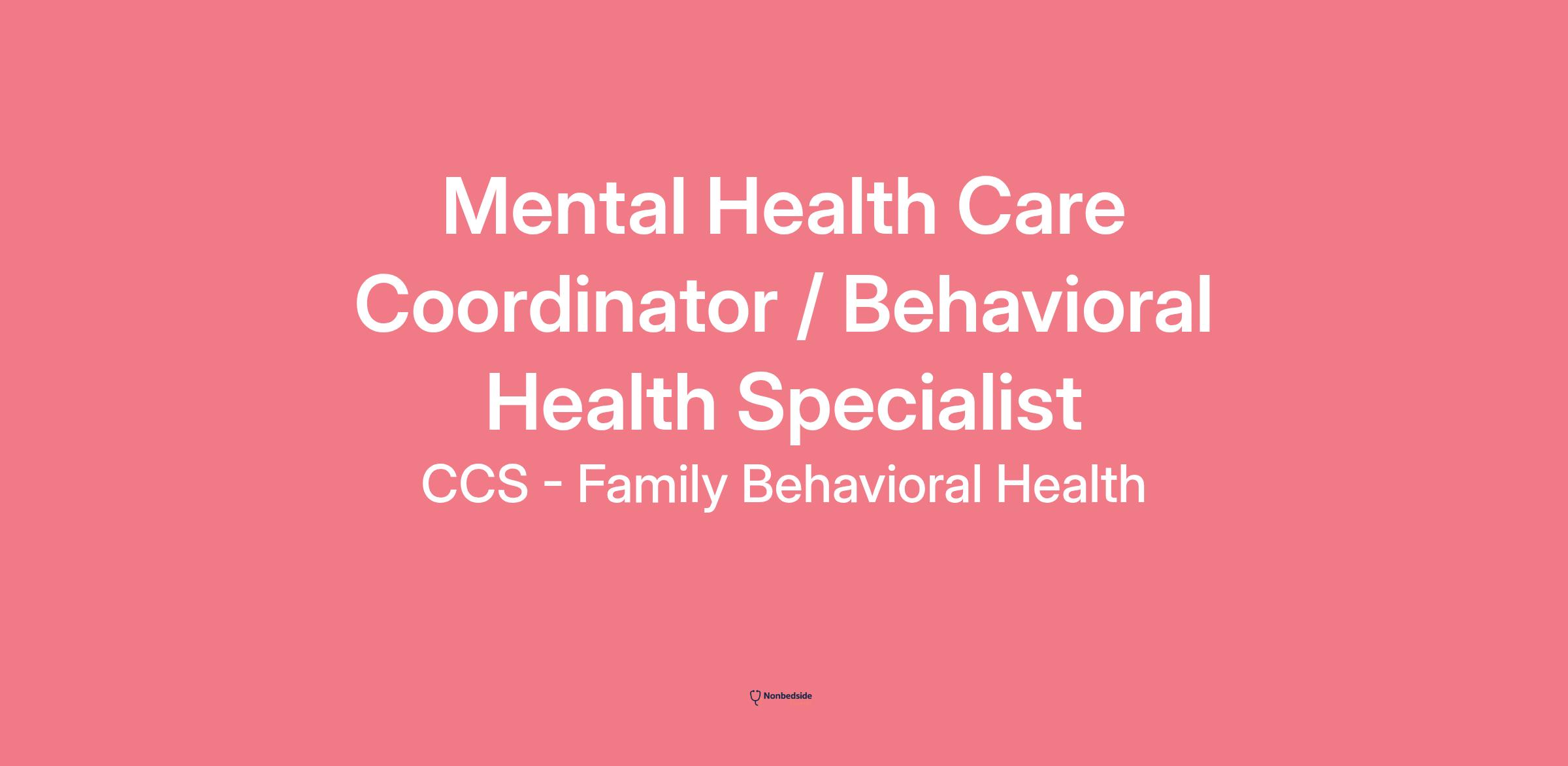 NEW HIRE SIGN-ON BONUS - $2000.00!RELOCATION ASSISTANCE!Catholic Community Services, Family Behavioral Health is looking for a Mental Health Care Coordinator to join our team of innovators who continually "push the envelope" and challenges traditional thinking in Behavioral Health.