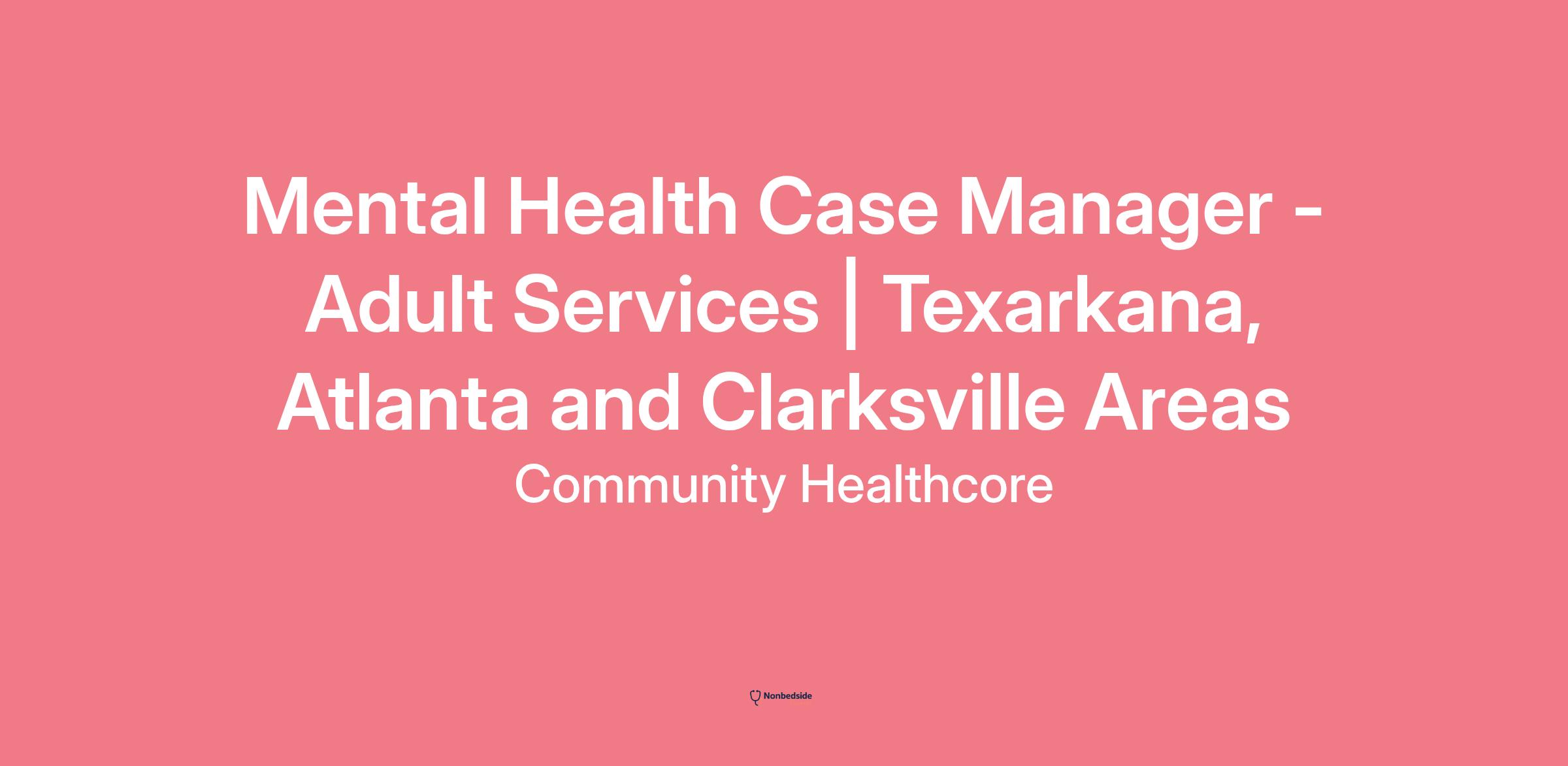 Mental Health Case Manager - Adult Services | Texarkana, Atlanta and Clarksville Areas JOB TITLE: Qualified Mental Health Professional