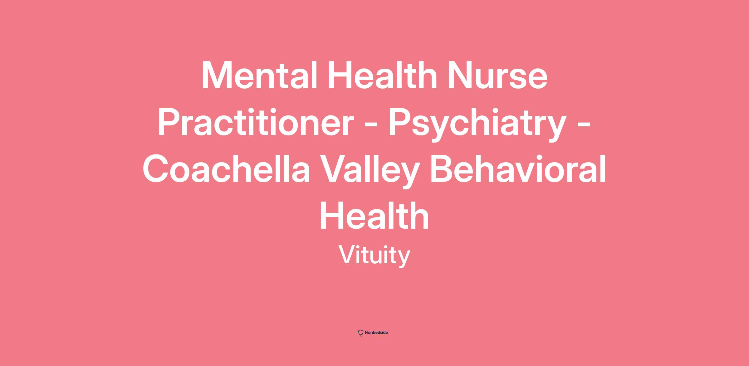 Mental Health Nurse Practitioner - Psychiatry - Coachella Valley Behavioral Health