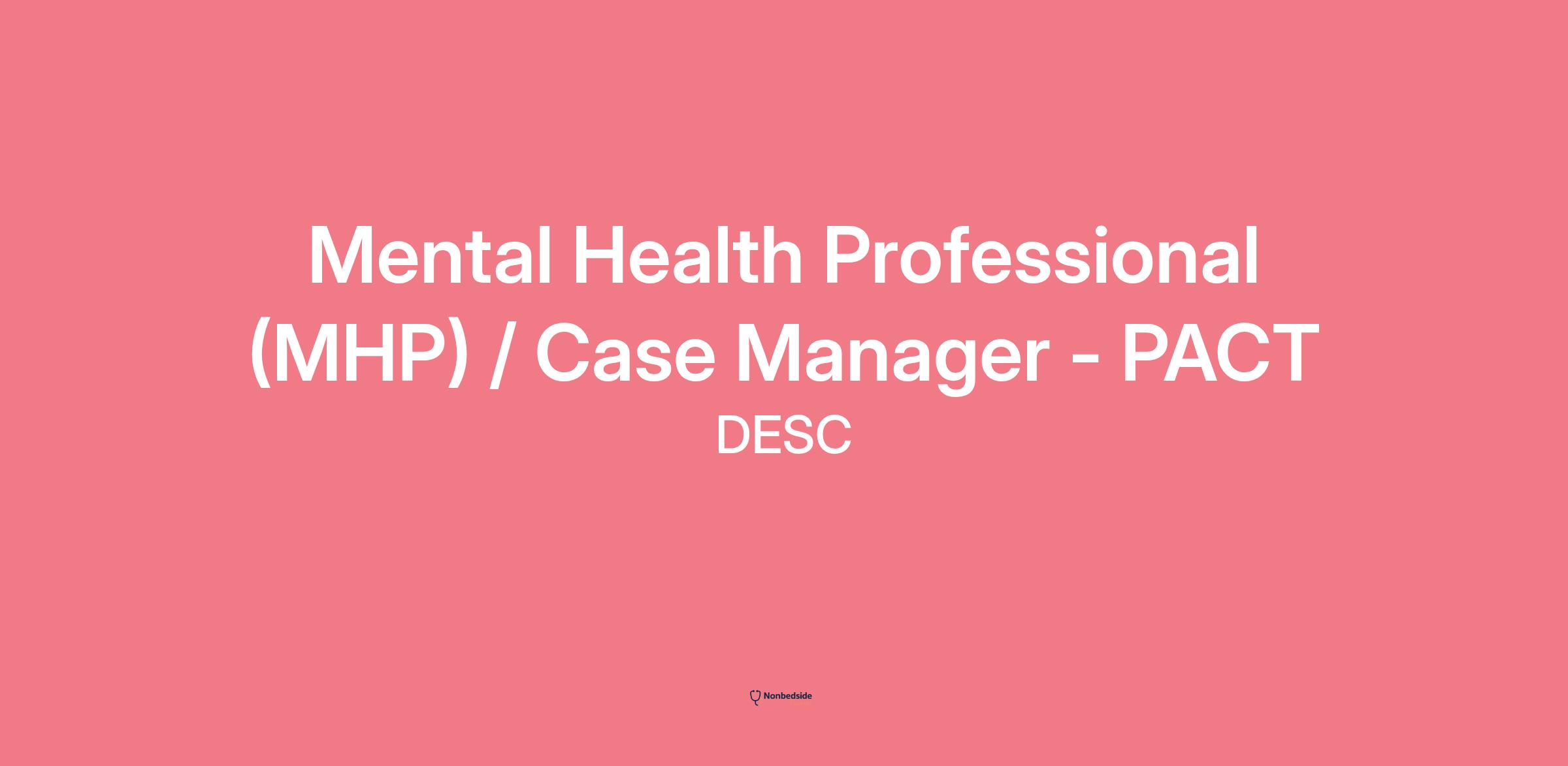 Overview Mental Health Professional / Case Manager – Program of Assertive Community Treatment (PACT)