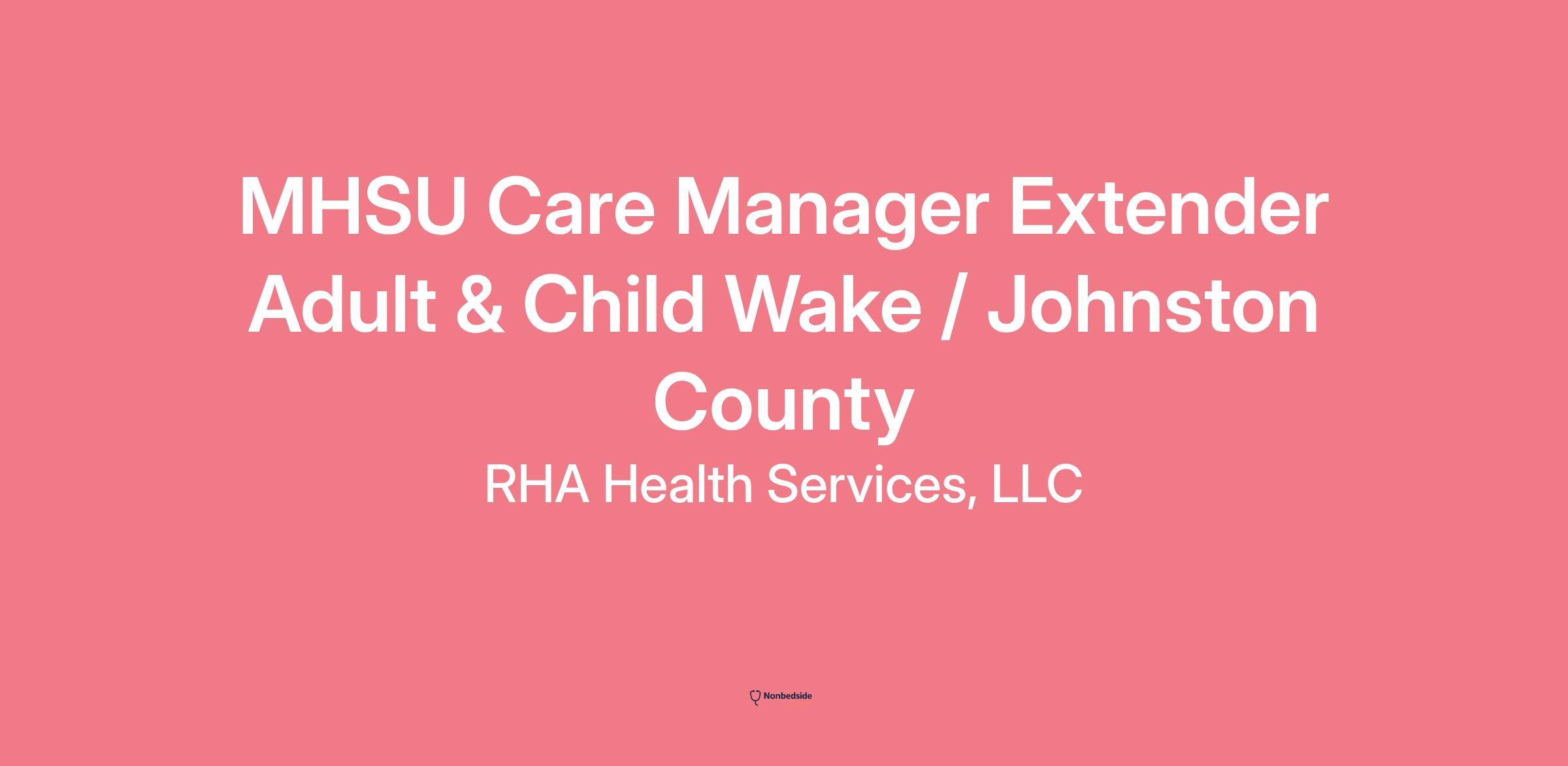 **We are hiring for:**MHSU Care Manager Extender Adult & Child Wake / Johnston County**Type:**RegularIf you are a positive and personable individual looking for a satisfying and fun opportunity to make a real difference in the lives of people with intellectual, developmental disabilities, and people facing mental health, and substance use challenges, join our team at RHA Health Services! Provides whole person, integrated care management in service sites, homes and communities through face to face and other interactions and through the work of integrated care teams. Promotes whole person care directed at better health outcomes and addressing all needs spanning physical and behavioral health, I/DD, pharmacy, and unmet health related resources. Ensures sustained high quality of care and services to persons with mental health, substance use and/or developmental disabilities. Complies with company, state and federal policy.**Required Education/Experience:****Education**- High School Diploma or equivalent; Must be at least 18 years of age**Experience**- Must meet at least one of the following requirements:* o Be a person with lived experience with an I/DD or a TBI with demonstrated knowledge of and direct personal experience navigating the North Carolina Medicaid delivery system.\** OR* o Be a person with lived experience with a behavioral health condition and a Certified Peer Support Specialists.* OR* o Be a parent or guardian of an individual with an I/DD or a TBI or a behavioral health condition and has at least two years of direct experience providing care for and navigating the Medicaid delivery system on behalf of that individual (parent/guardian cannot serve as an extender for their family member).\** OR* Have two (2) years of paid experience performing the following types of functions, with at least one year of paid experience working directly with the Tailored Care Management eligible population:* Performing general outreach, engagement, and follow-up with members* Coordinating services/appointments (e.g., appointment/wellness reminders, arranging transportation)* Engaging in health promotion activities (as defined in the Tailored Care Management Provider Manual) and knowledge sharing* Sharing information with the care manager and other members of the care team on the member’s circumstances* Providing and tracking referrals and providing information and assistance in obtaining and maintaining community-based resources and social support services* Participating in case conferences* Support the care manager in assessing and addressing unmet health-related resource needs**License:*** Must have Valid Driver's License**Essential Job Related Responsibilities*** **Care Management Service Delivery** – Performs general outreach, engagement, and follow-up with members; coordinates services/appointments (e.g., appointment/wellness reminders, arranging transportation); Engages in health promotion activities (as defined in the Tailored Care Management Provider Manual) and knowledge sharing; shares information with the care manager and other members of the care team on the member’s circumstances; Provides and tracks referrals and providing information and assistance in obtaining and maintaining community-based resources and social support services; Participates in case conferences; supports the care manager in assessing and addressing unmet health-related resource needs. Implements workflows, policies and procedures, and documentation standards that promote whole person care.. Maintains a positive and professional image in the work setting and community. Follows policies and procedures to ensure accountability of service delivery.* **Best Practices –** Demonstrates a passion for positive change by continuously improving and defining innovative care management interventions. Stays up to date with current best practices and keeps the team continuously informed about best practice innovations.* **Cross-functional Collaboration -** Collaborates cross-functionally with other Integrated Care Team members, community organizations and RHA departments to ensure success of Care Management implementation.* **Person-Centered Approach** – Maintains a person-centered philosophy focusing on an individual’s strengths, needs, and preferences that promote health, wellness, and safety. Fosters a person-centered culture with Care Management Teams to optimize individual education around self-management, disease management, and integrated healthcare planning.* **Quality Assurance and Use Of Data -** Implements the strategic use of data to support delivery of effective, integrated, and well-coordinated care management services.. Ensures individual data sharing and storage consistent with state and company policies.* **Maintains a Safe and Healthy Environment-** Implements all organization health and safety policies and procedures.* **Financial Performance** - responsible for documenting services provided in a timely manner in order to be appropriately accounted for reimbursement purposes* **Ensures proactive and effective communication -** Establishes and maintains frequent and regular communication with persons supported, family members, other team members and colleagues. Fosters open communication and feedback. Helps maintain focus on care planning goals and outcomes. Establishes and maintains strong external relationships, to include providers, community organizations, and Clinically Integrated Networks (CIN).* **Ethics & Compliance –** Supports and participates in an ethical culture in conjunction with the RHA Code of Conduct and Ethics and Compliance Program, emphasizing confidentiality and no retaliation policies. Directs the confidential and immediate investigation into allegations of abuse, neglect, exploitation, theft, fraud, waste, misconduct, and violations of ethics and compliance practices according to company policy. Ensures protections of individuals served during investigations. Ensures all 