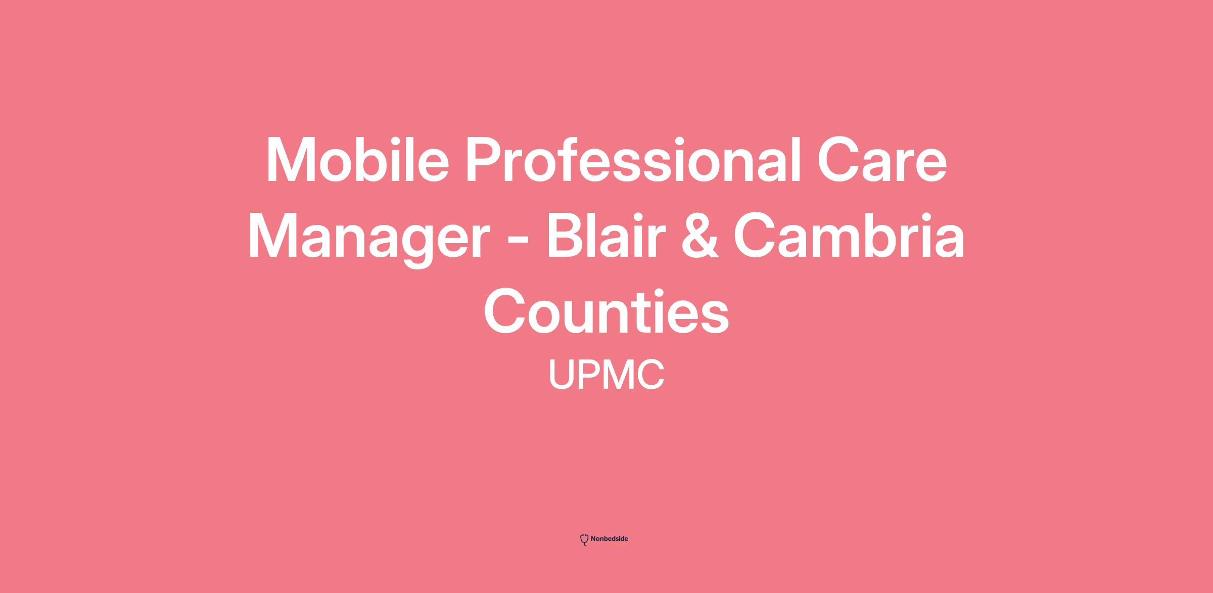 UPMC Health Plan is hiring a full-time Mobile Professional Care Manager to join the Community Team. This role will work standard daylight hours Monday - Friday. This position works in a hybrid structure with time spent working remotely, travelling in the community in Blair County and parts of Cambria County, and occasional attendance in the office in downtown Pittsburgh (as needed). Mileage reimbursement is provided at the IRS rate.