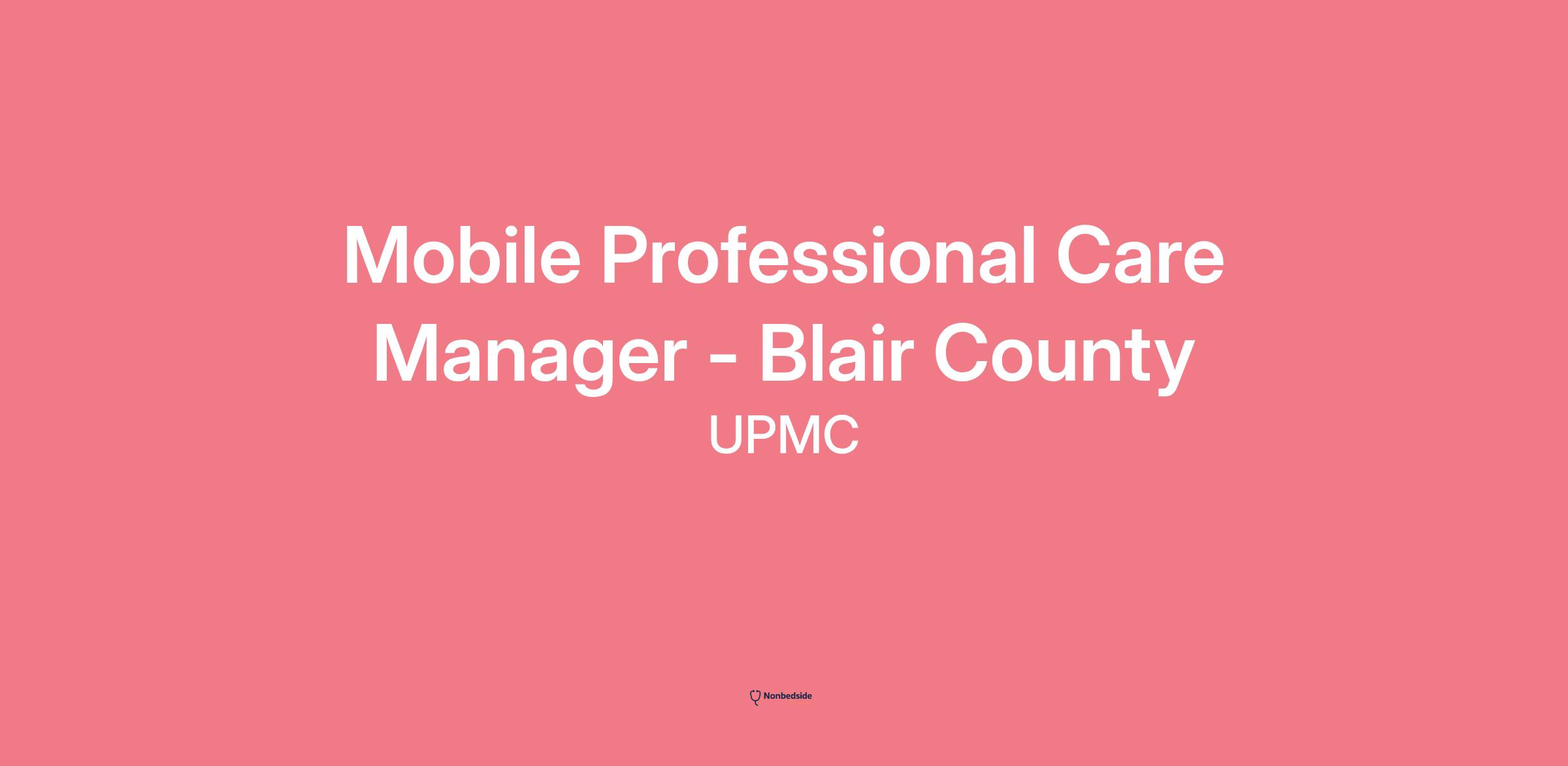 UPMC Community Care Behavioral Health is seeking a full-time Mobile Professional Care Manager to support the Community Services Department in Blair County!