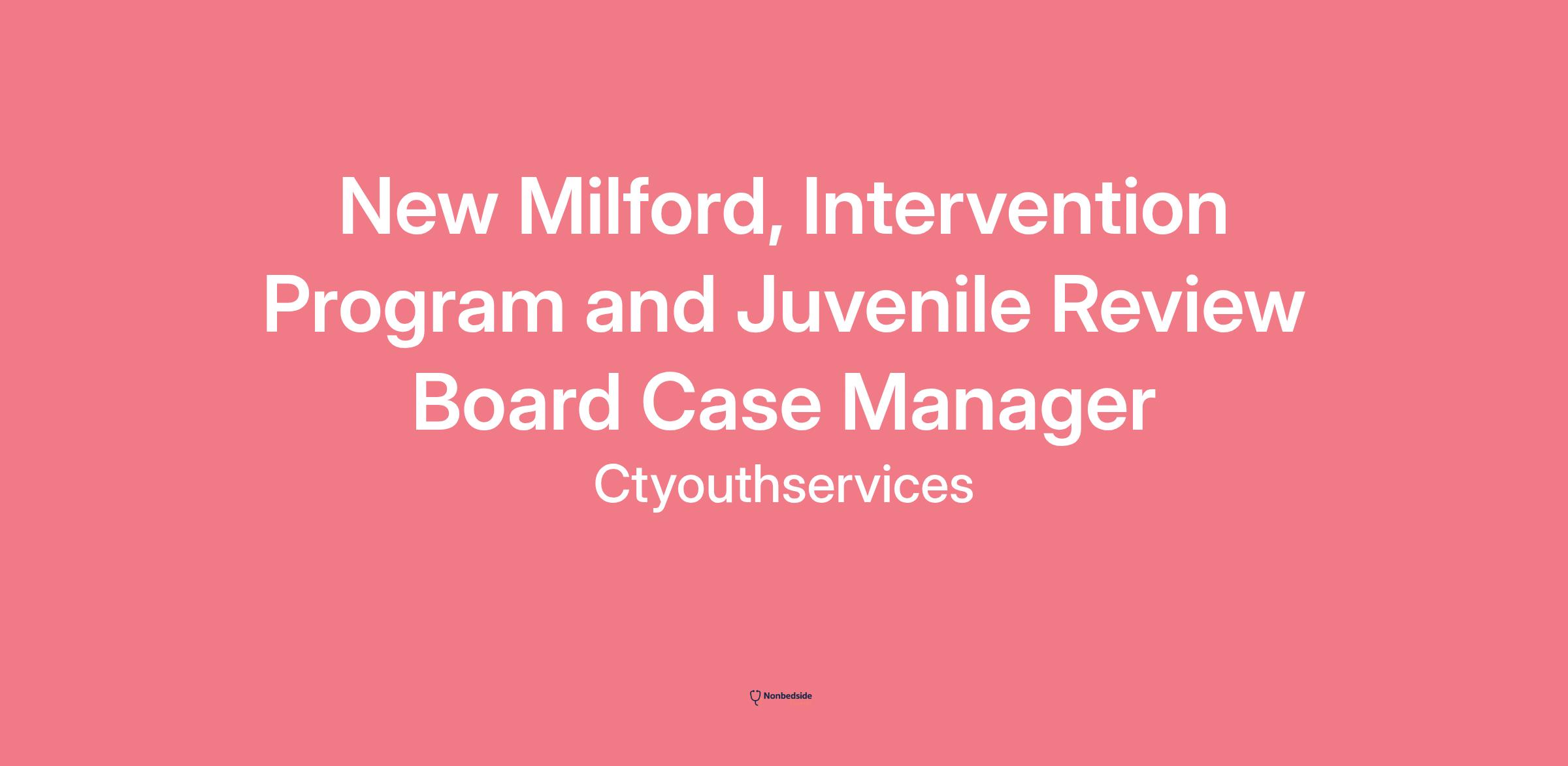 New Milford, Intervention Program and Juvenile Review Board Case Manager Description: The New Milford Youth Agency is hiring for an Intervention Program and Juvenile Review Board Case Manager. This is a 40-hour, non-union, salaried, and full-time position with the Town of New Milford. Primary responsibilities include: oversight and management of the Youth Agency's Youth Diversion Team or Juvenile Review Board (JRB), the Agency's diversion program for youth involved with the juvenile justice system. Other responsibilities include community outreach and advocacy to assist with the design, implementation, and assessment of the Town of New Milford's intervention programming and services for involved youth and families.