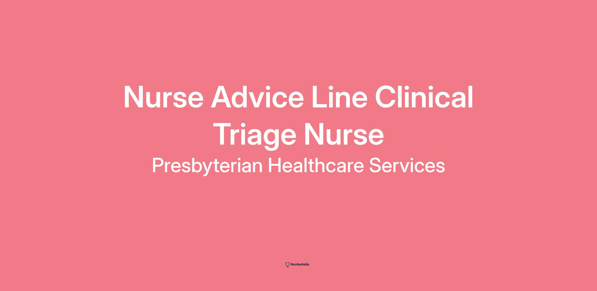 Join to apply for the Nurse Advice Line Clinical Triage Nurse role at Presbyterian Healthcare Services