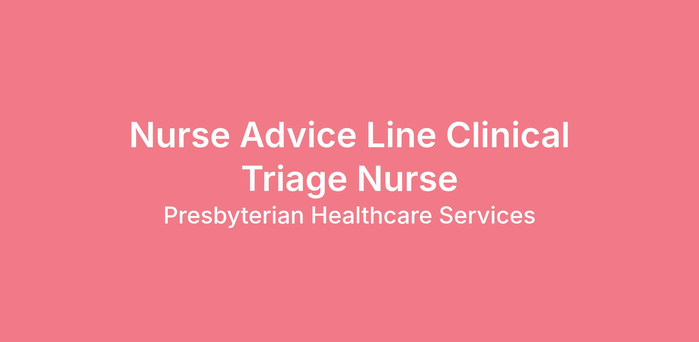 Build your Career. Make a Difference. Presbyterian is hiring a skilled Nurse Advice Line Clinical Triage Nurse to join our team.