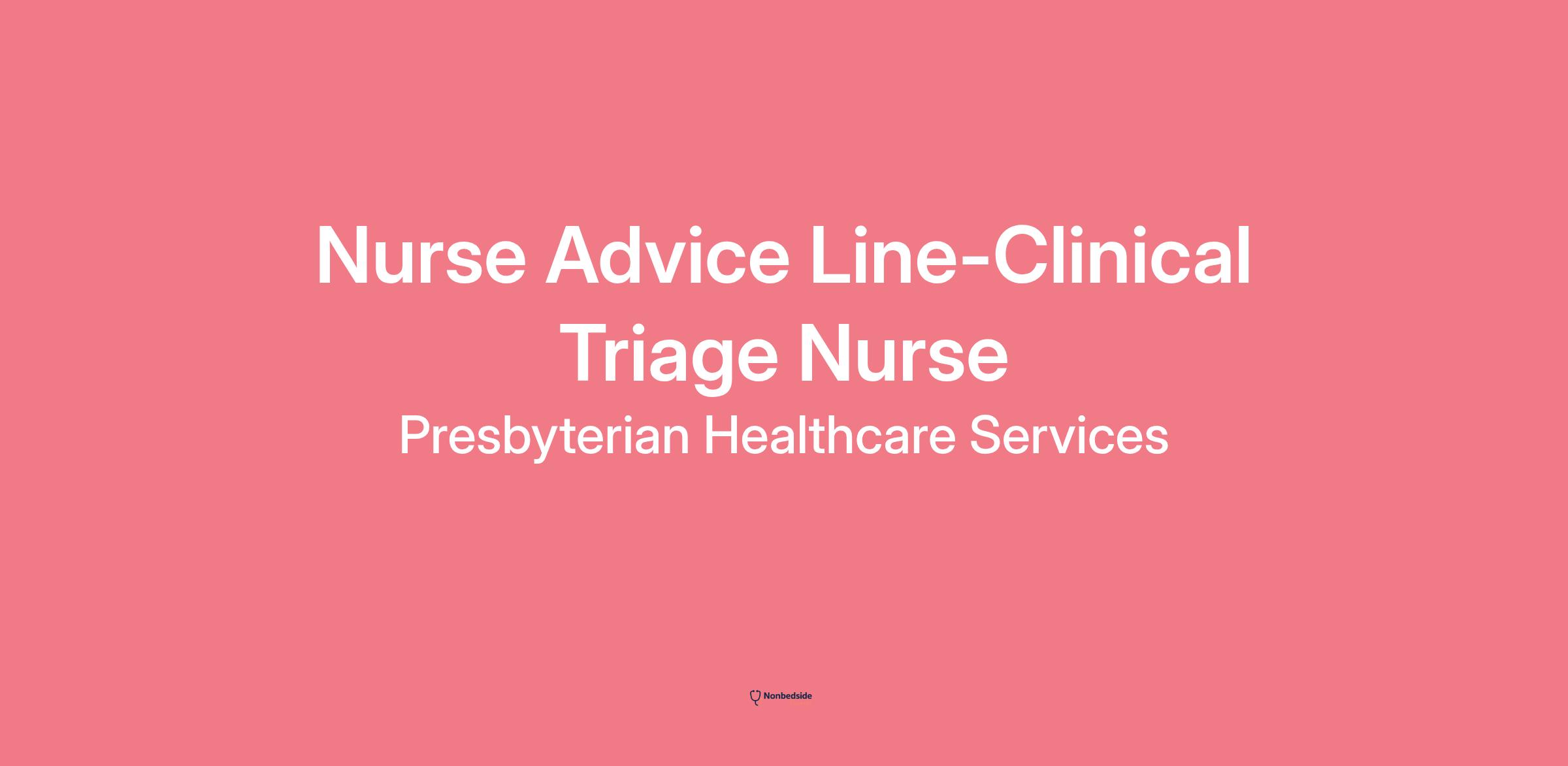 Presbyterian is seeking a Nurse Advice Line - Clinical Triage.