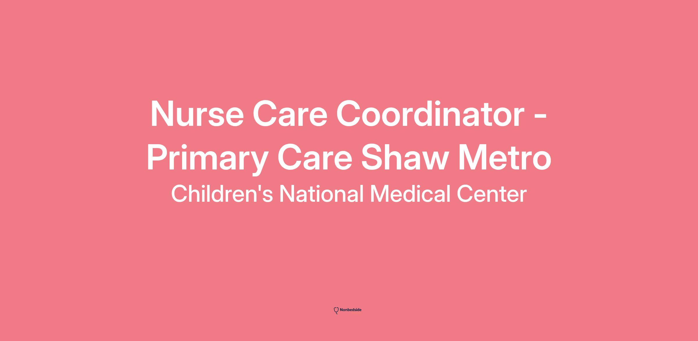 Job Description - Nurse Care Coordinator - Primary Care Shaw Metro