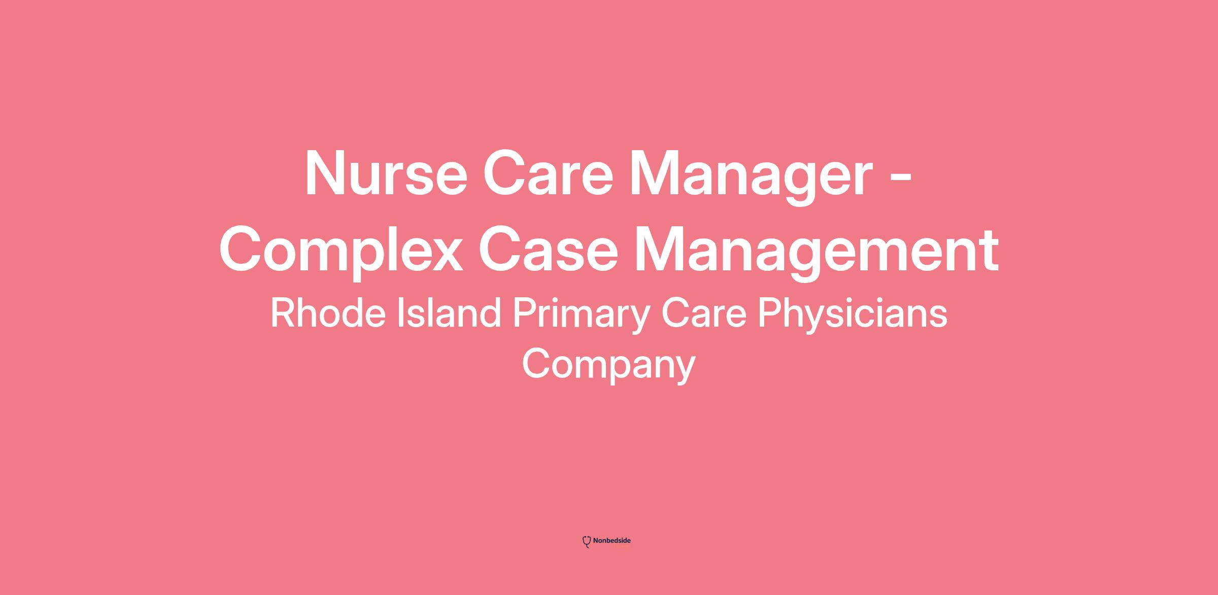 Overview Rhode Island Primary Care Physicians Corporation (RIPCPC) is seeking a Nurse Care Manager Complex Case Management (CCM) to join our innovative, interdisciplinary team. Reporting to the Nurse Manager, you'll provide holistic care management to high-risk patients, helping improve their health outcomes while working in a supportive, team-based, and values-driven environment. With regular weekday hours, paid time off, and no weekend shifts, this is your opportunity to use your nursing skills in a more rewarding and sustainable way.
