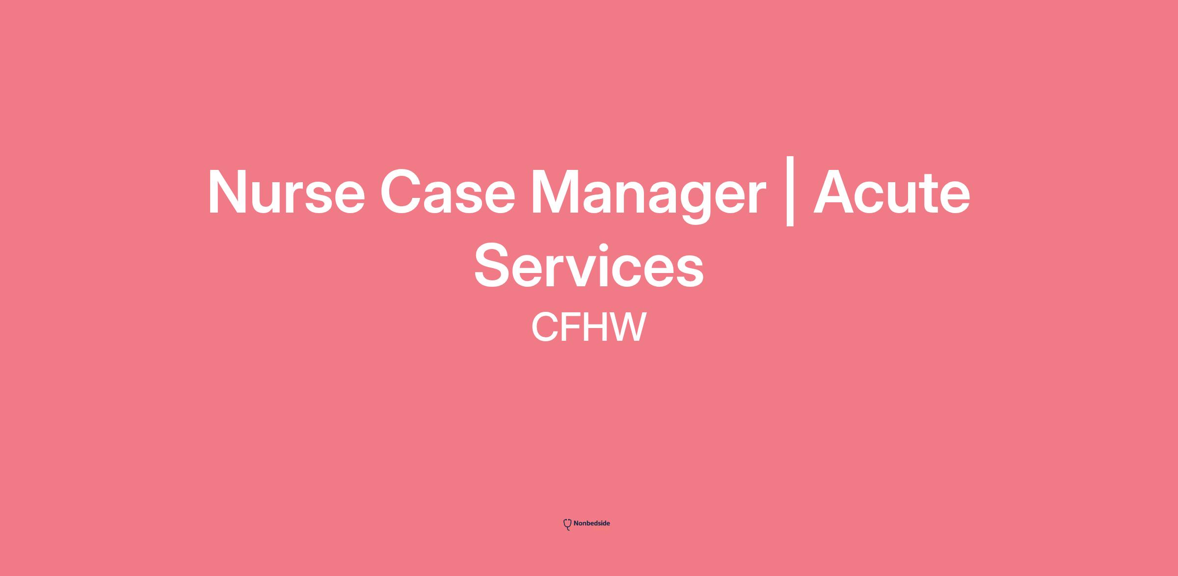 As our RN Case Manager for Acute Care Services (ACS), you will work in the Medically Assisted Therapy (MAT) Outpatient team. You will support complex care for patients in our locations and services that are part of the ACS programs including, Withdrawal Management and various clinics throughout CFHW.