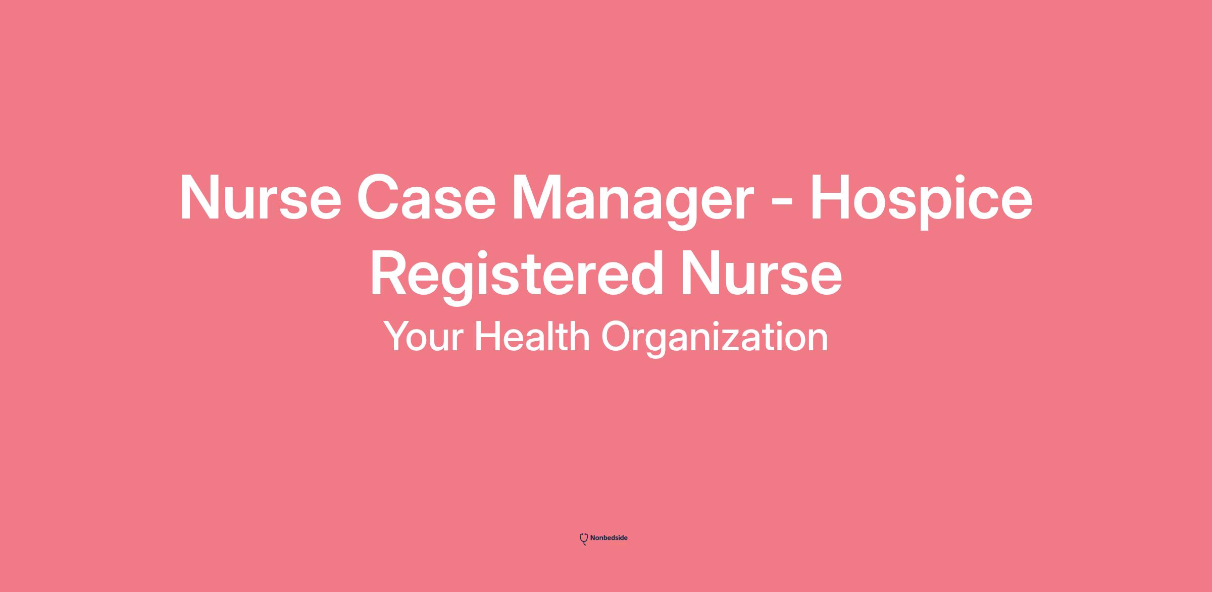 Nurse Case Manager - Hospice Registered Nurse We are seeking Registered Nurse to service our Palliative/Hospice patients throughout the Columbia area. Nurse Case Managers will service homes and/or Assisted Living Facility patients in care coordination with the provider within their assigned service area(s).