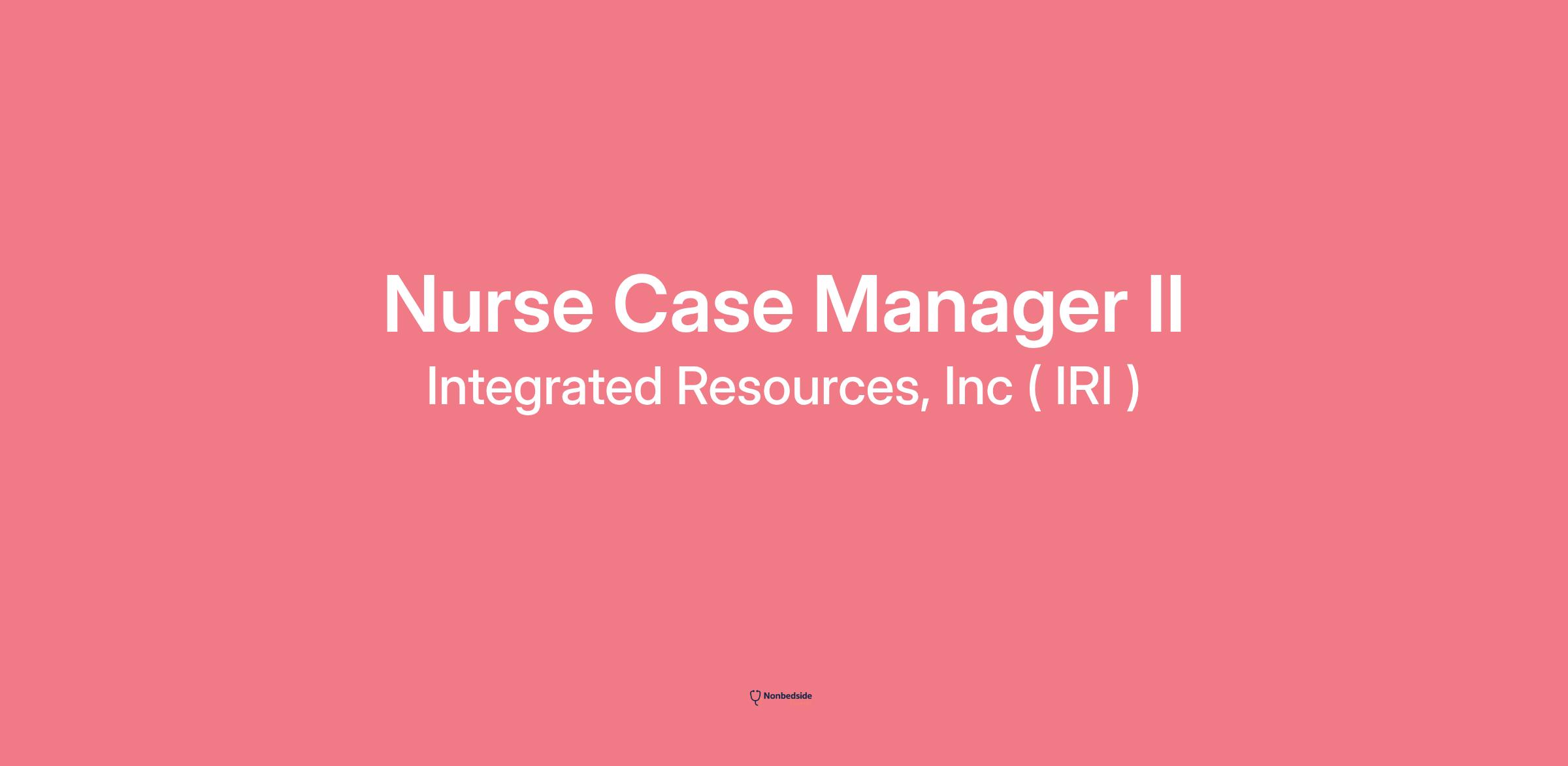 Join to apply for the Nurse Case Manager II role at Integrated Resources, Inc (IRI) Get AI-powered advice on this job and more exclusive features.