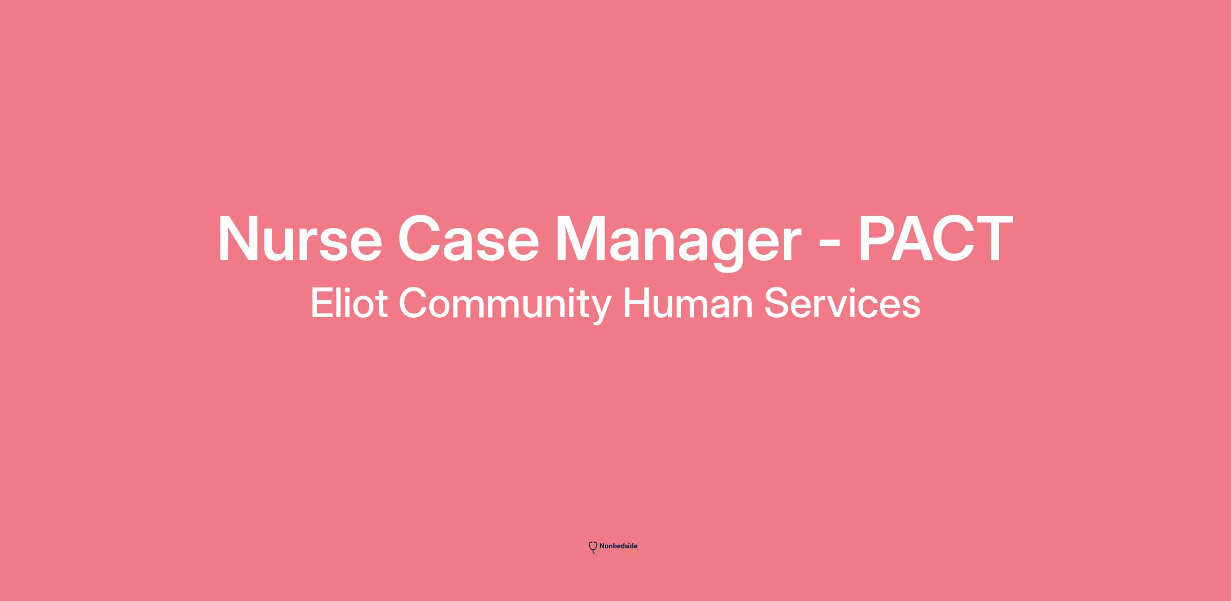 Eliot is seeking a strong, experienced, licensed RN or LPN, Nurse Case Manager, to join our Program for Assertive Community Treatment (PACT) team. PACT is an evidence-based model that provides comprehensive treatment, rehabilitation, and support to adults with severe and persistent mental illness.