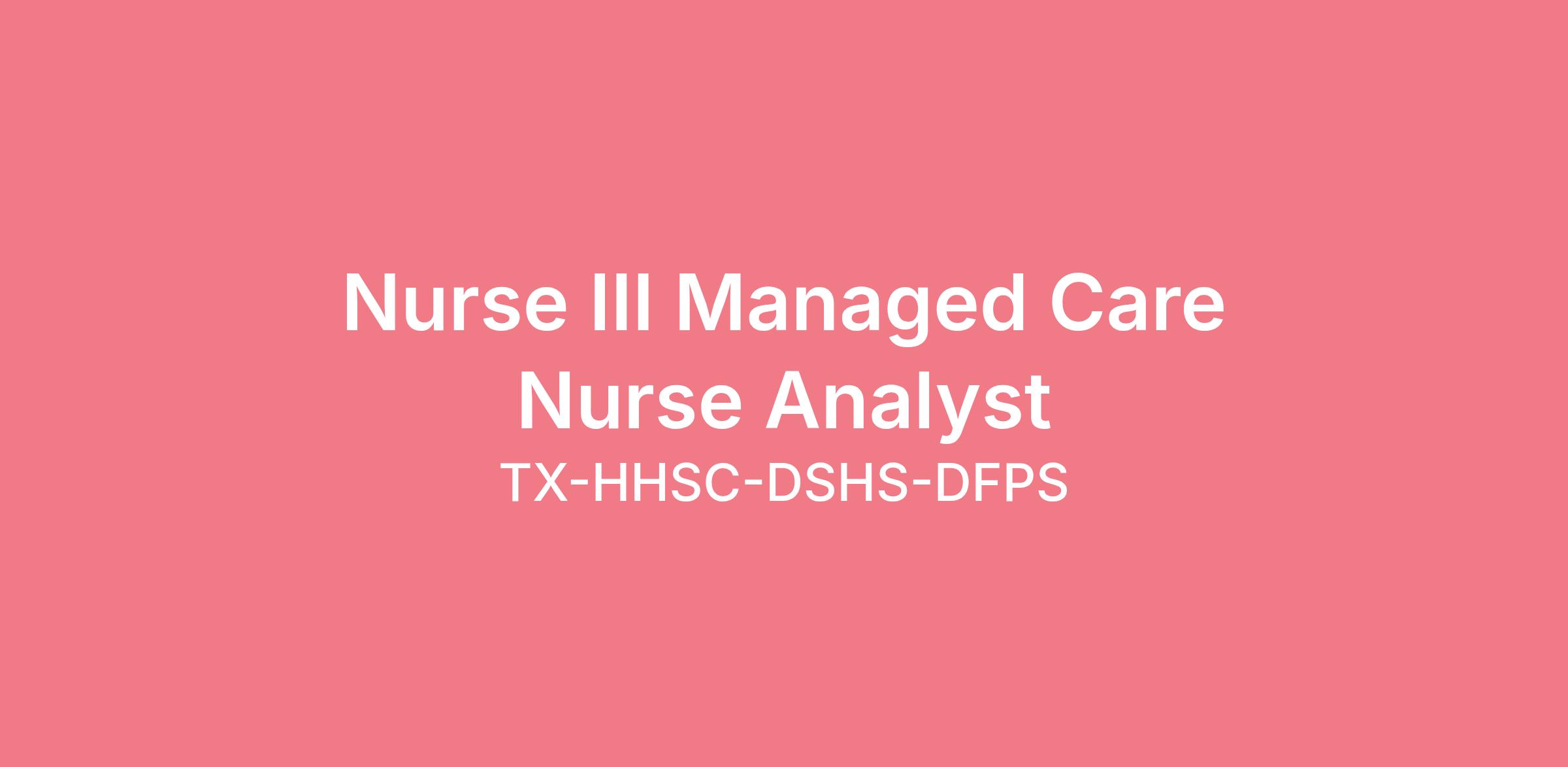 Functional Title: Nurse III Managed Care Nurse Analyst