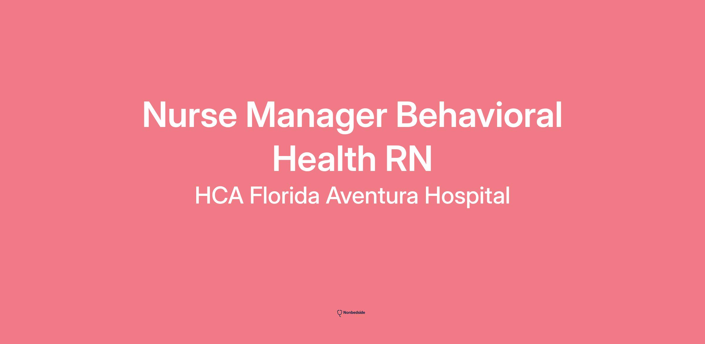 We are seeking a Nurse Manager Behavioral Health RN with HCA Florida Aventura Hospital to promote growth and unlock possibilities. At HCA Healthcare, we are committed to the care and improvement of human life. Share your leadership skills and come make a difference with us!