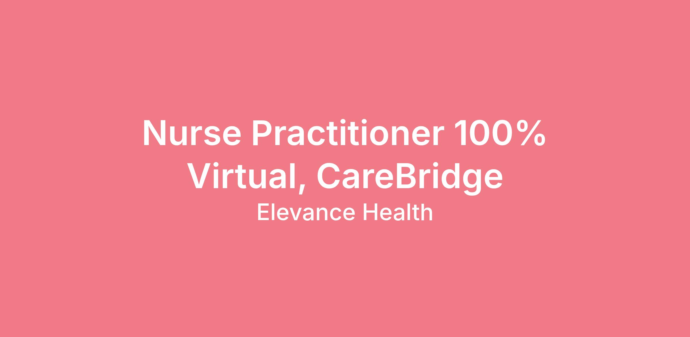 Nurse Practitioner 100% Virtual, CareBridgeJob Description: