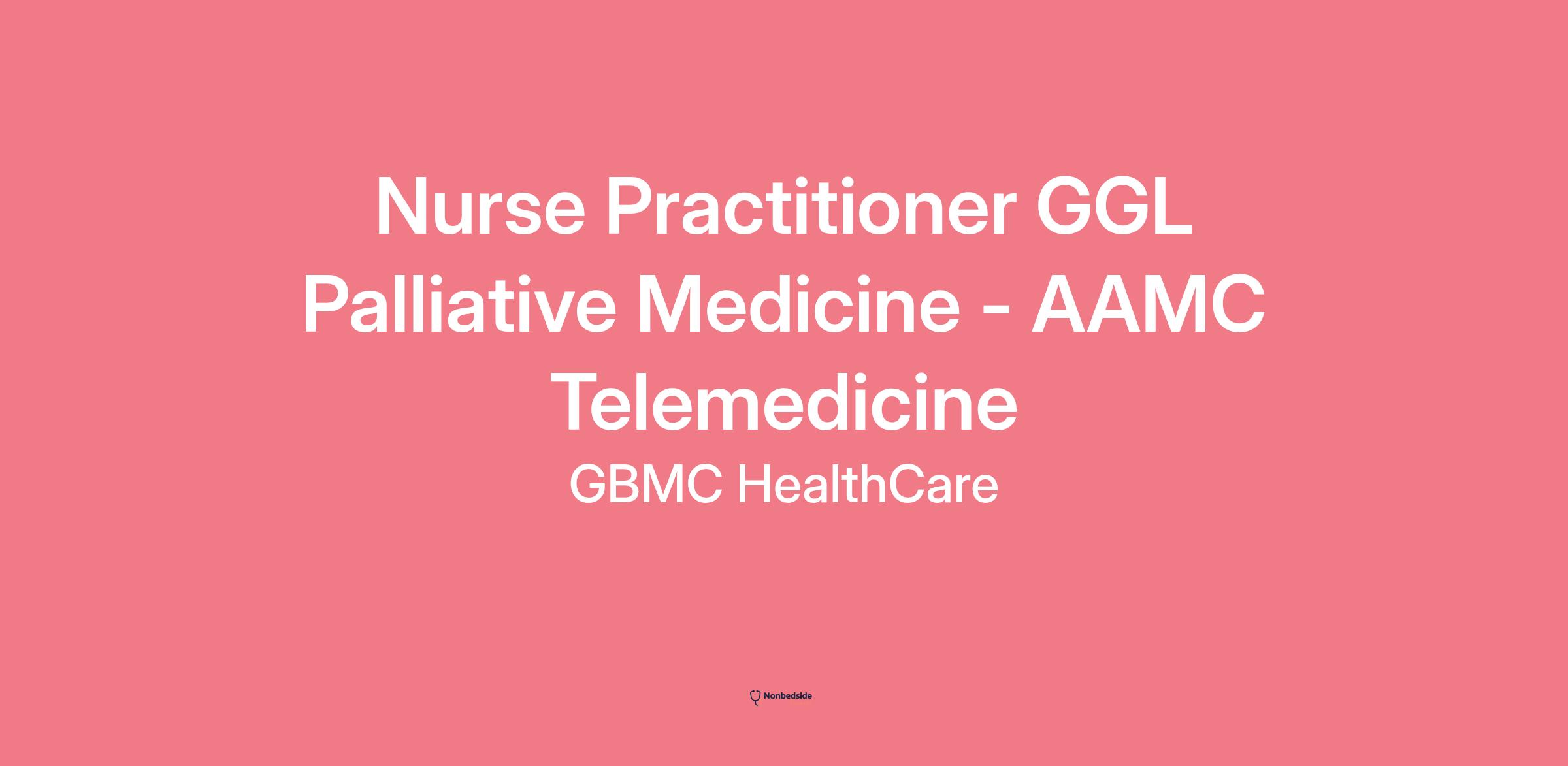 Join to apply for the Nurse Practitioner GGL Palliative Medicine - AAMC Telemedicine role at GBMC HealthCare