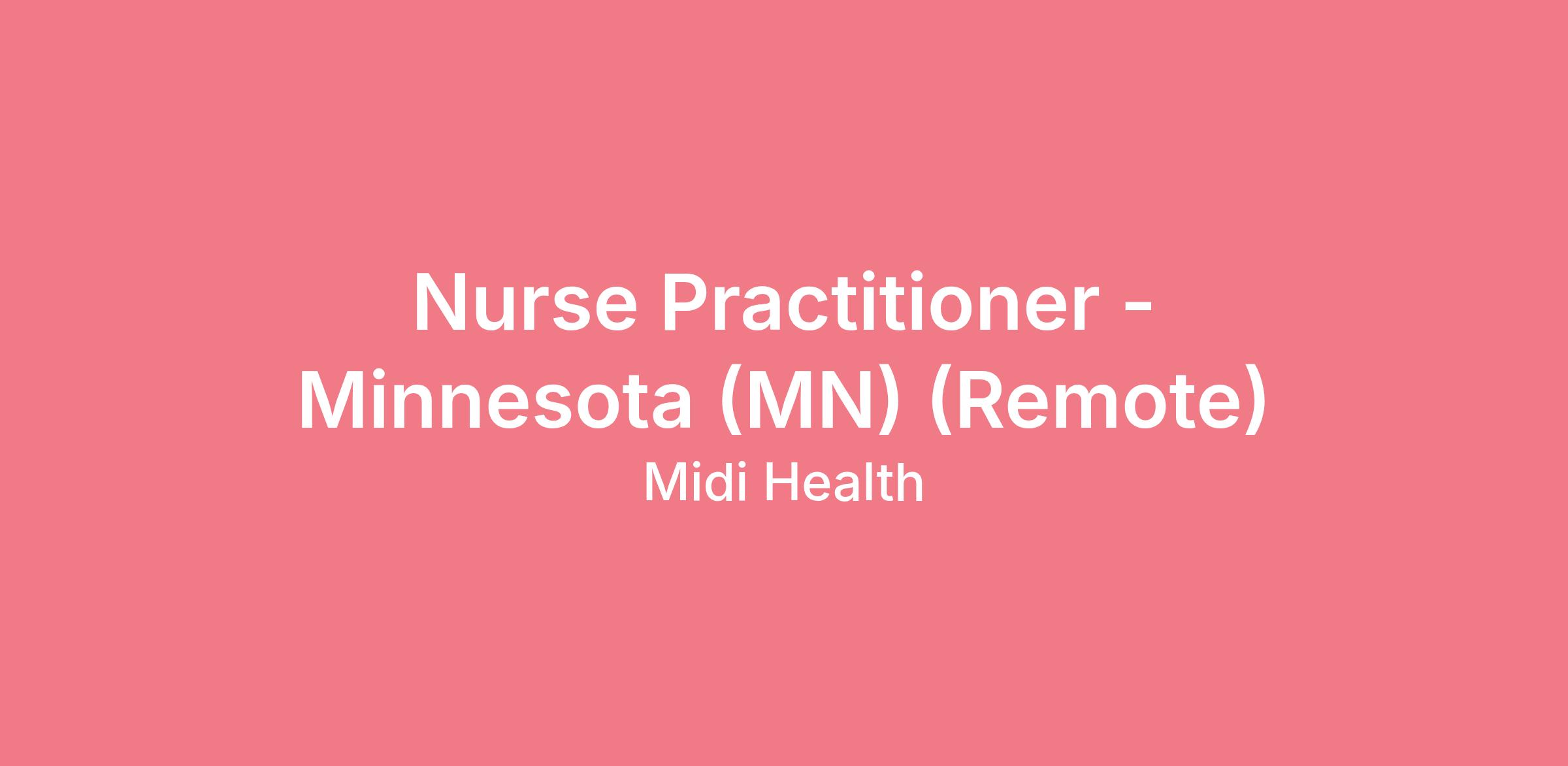 Midi Health is an Equal Opportunity Employer. We are committed to pay equity and ensure that all qualified applicants receive consideration for employment without regard to race, color, religion, sex, sexual orientation, gender identity, national origin, disability, or protected veteran status. Our compensation philosophy is based on fair, objective criteria and the impact of the role, regardless of an applicant’s salary history.