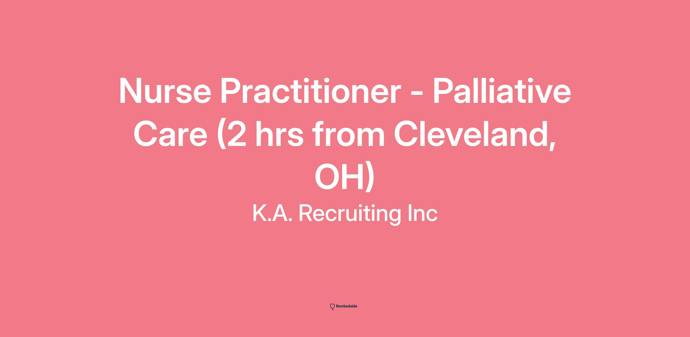 Nurse Practitioner - Palliative Care (2 hrs from Cleveland, OH) Full-time