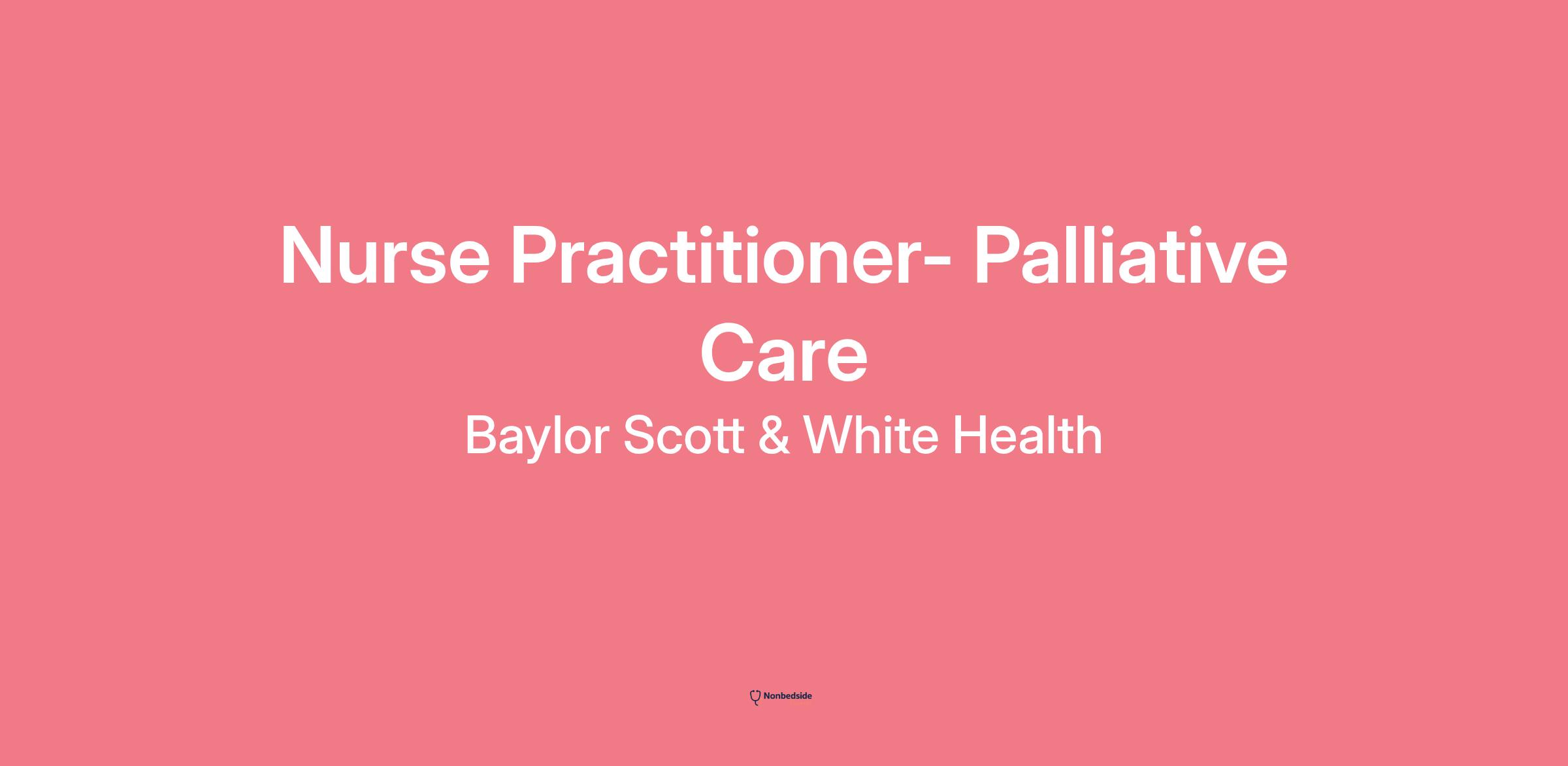 Overview Baylor Scott & White Health has an opening for a to join our Palliative Care Team in Waco/ Hillcrest, Texas.