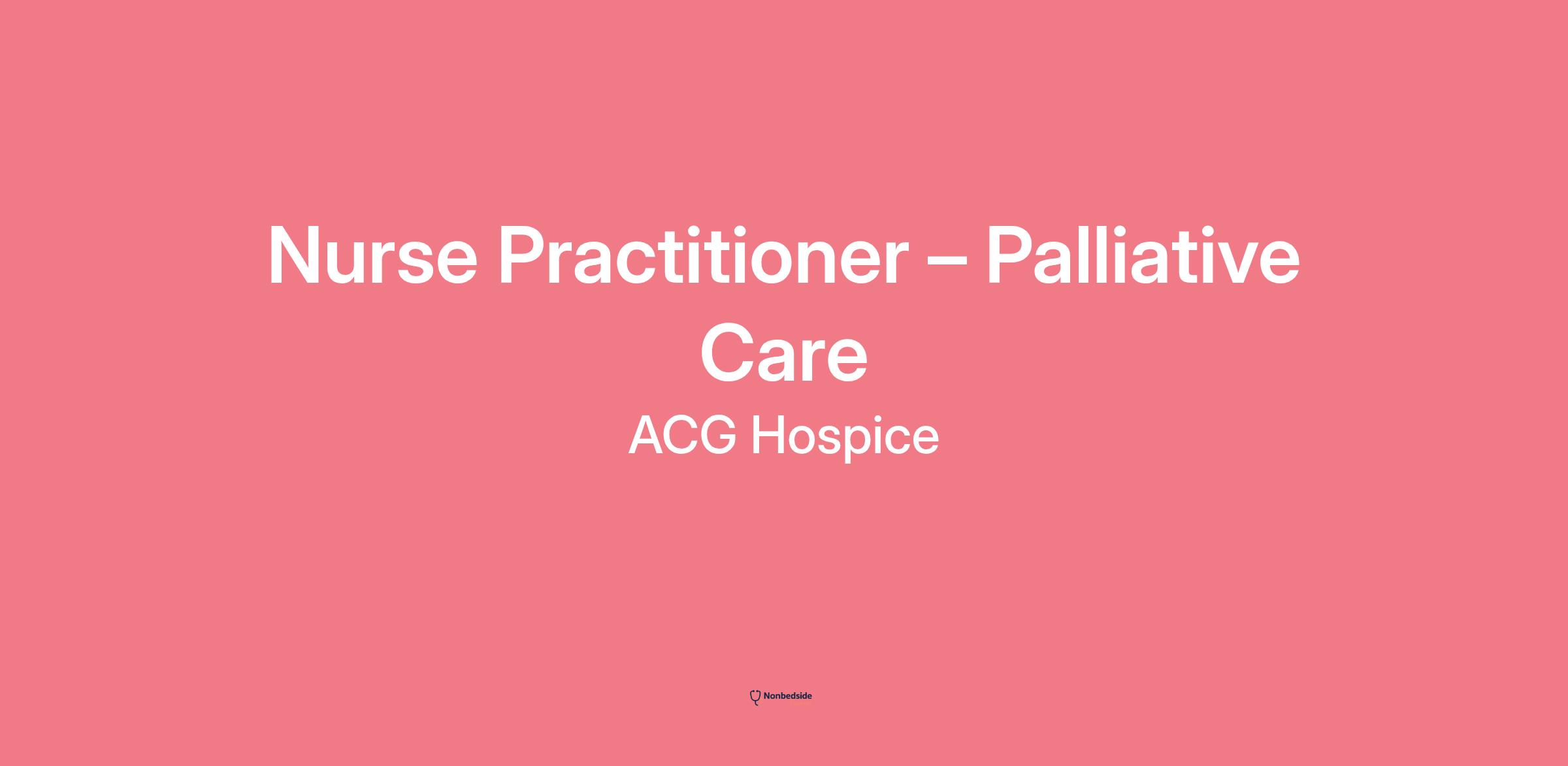 Join to apply for the Nurse Practitioner – Palliative Care role at ACG Hospice .