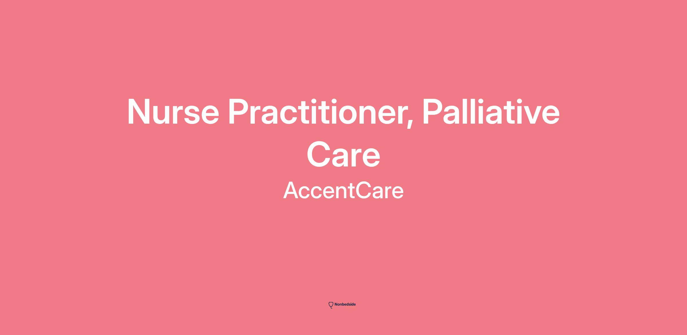 Reimagine Your Career in Palliative Care AccentCare is a purpose‑driven, collaborative culture that sets the standard for excellence and gives you the trust and tools to do your best work. You will belong to a team that cares deeply for patients and each other; a team committed to consistently providing exceptional care.