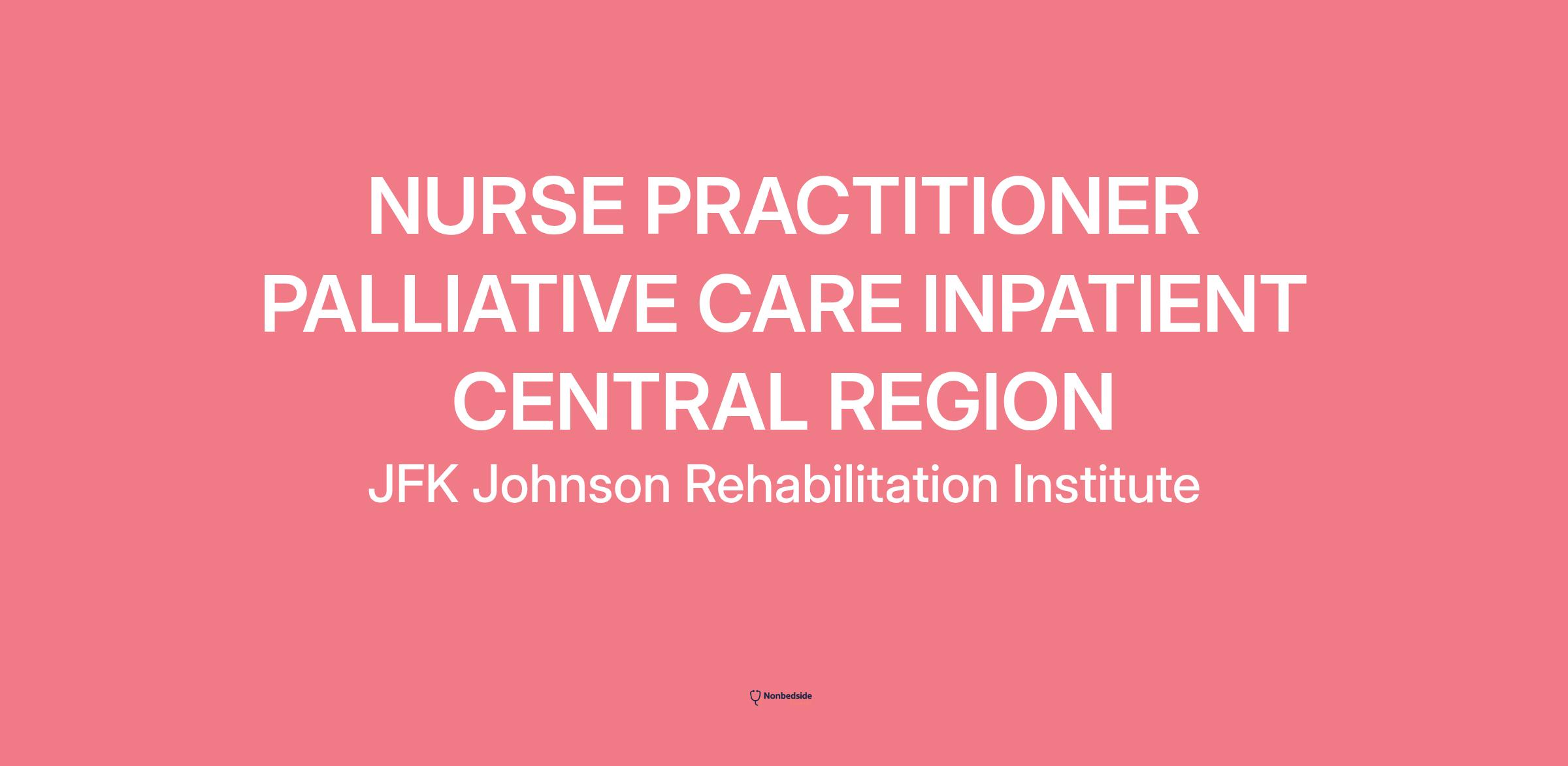 The Palliative Care NP will function as a float NP to the central region hospitals for inpatient care (JFKUMC in Edison, Raritan Bay Medical Center in Perth Amboy, Old Bridge Medical Center in Old Bridge, Bayshore Medical Center in Holmdel, Riverview Medical Center in Red Bank and Jersey Shoure UMC in Neptune.