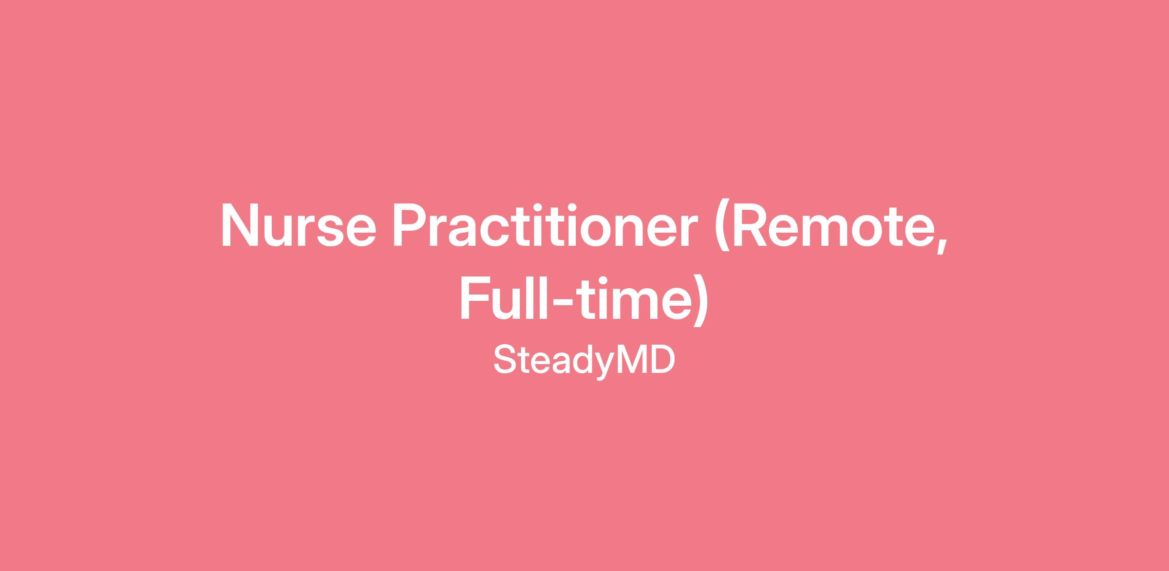 SteadyMD is excited to invite Nurse Practitioners with licensure in at least 25 licenses for a potential full-time role with our team.