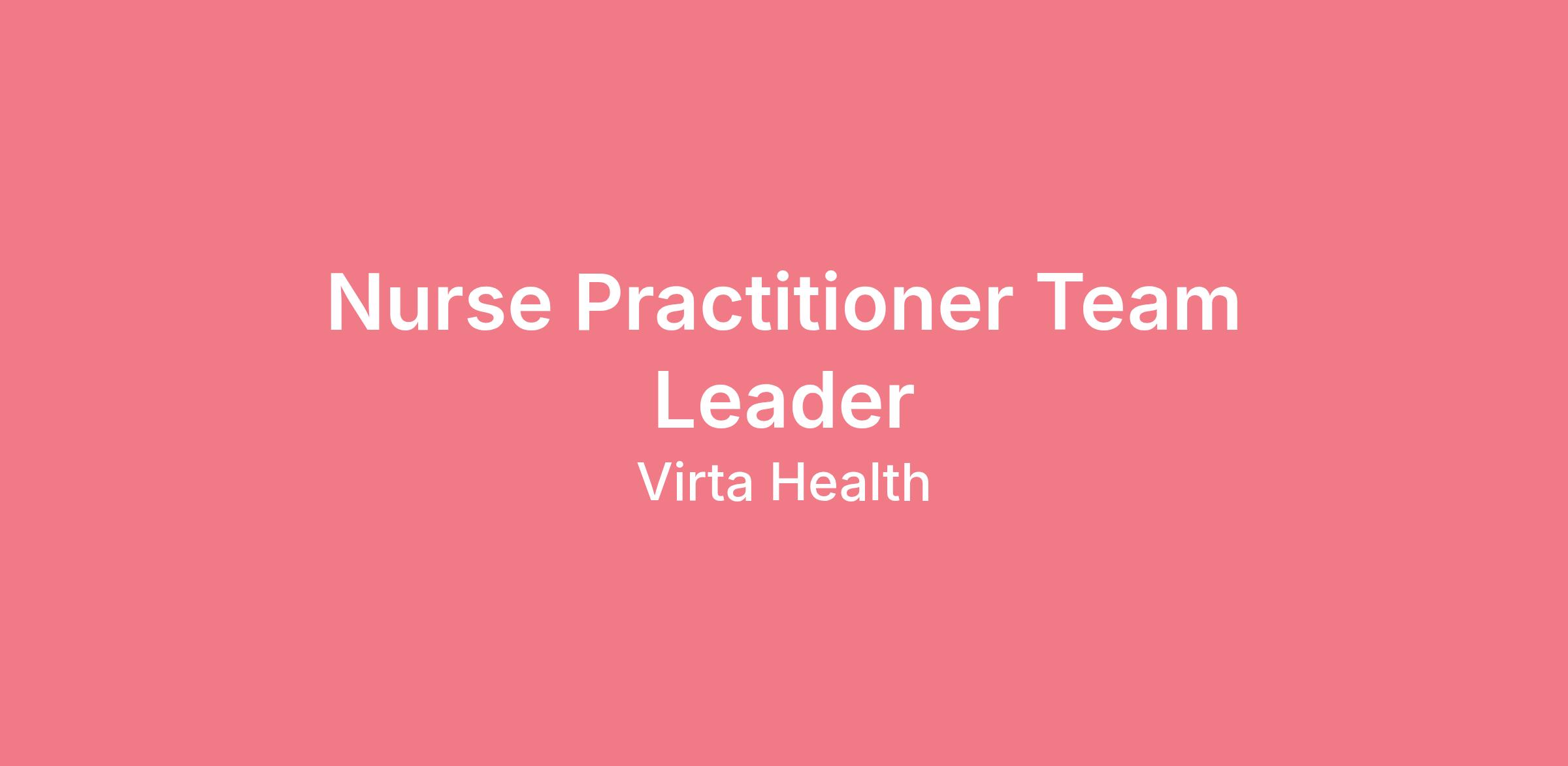 Reporting into the Associate CMO, the Virta Medical Group is searching for a nurse practitioner leader to lead and mentor a team of 8-10 nurse practitioners while seeing a part-time panel of Virta patients (0.6 FTE equivalent). The goal of the Virta Medical Group is to provide exemplary clinical care to our members while partnering with our counterparts in the Virta Health Corporation. This leader will manage the people and processes on their team to achieve the practice’s goal efficiently and effectively. The team leader does this by: