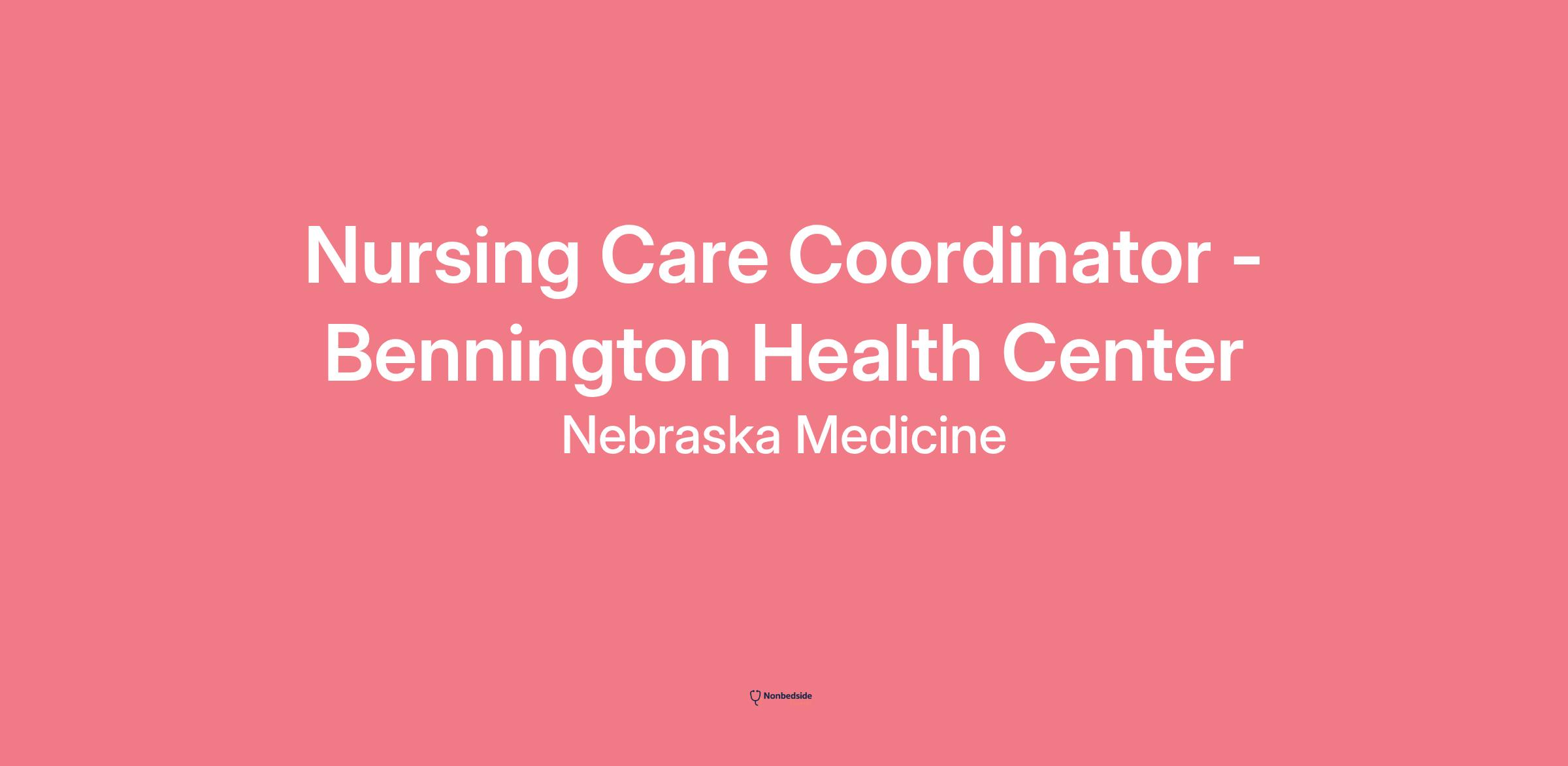 Position Highlights: Nebraska Medicine is seeking a Nursing Care Coordinator to join the Bennington Health Center Team, this role is located in Bennington, NE. The Nursing Care Coordinator will be responsible for patient assessment and planning, and overall care coordination through a multidisciplinary team collaboration. As well as providing patient education, serving as a liaison between patients and healthcare professionals, and regularly reviewing and adjusting patient care plans based on progress and feedback.