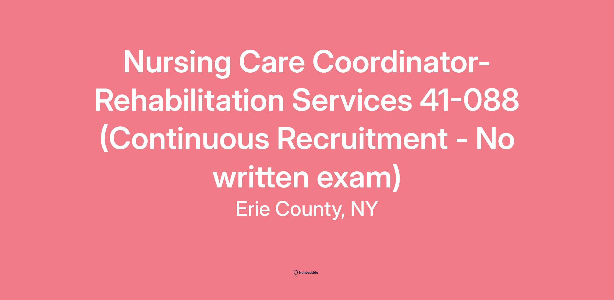 A Nursing Care Coordinator-Rehabilitation Services supervising and performing professional nursing care given to patients, utilizing the nursing process at the Erie county Medical Center Corporation (ECMCC);