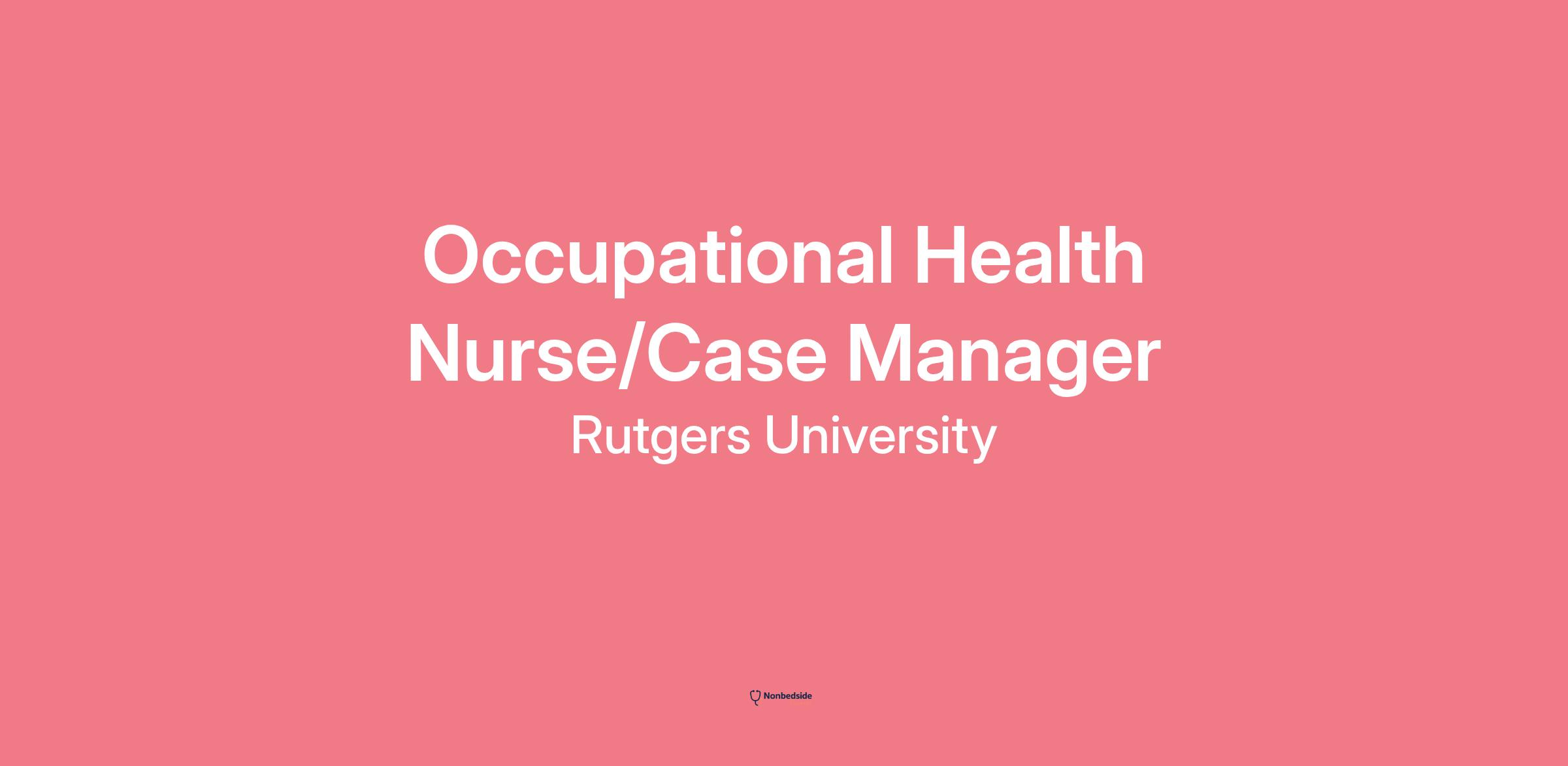 Posting Summary Rutgers, The State University of New Jersey, is seeking a Nurse Program Coordinator/Case Manager for the Rutgers Occupational Health Department. Reporting to the Administrative Manager, this position has primary responsibility for Occupational Health program management and case management for occupational injuries and illnesses on the New Brunswick, Camden, and Newark campuses, as well as Rutgers Cooperative Extensions, farms, and outlying departments.
