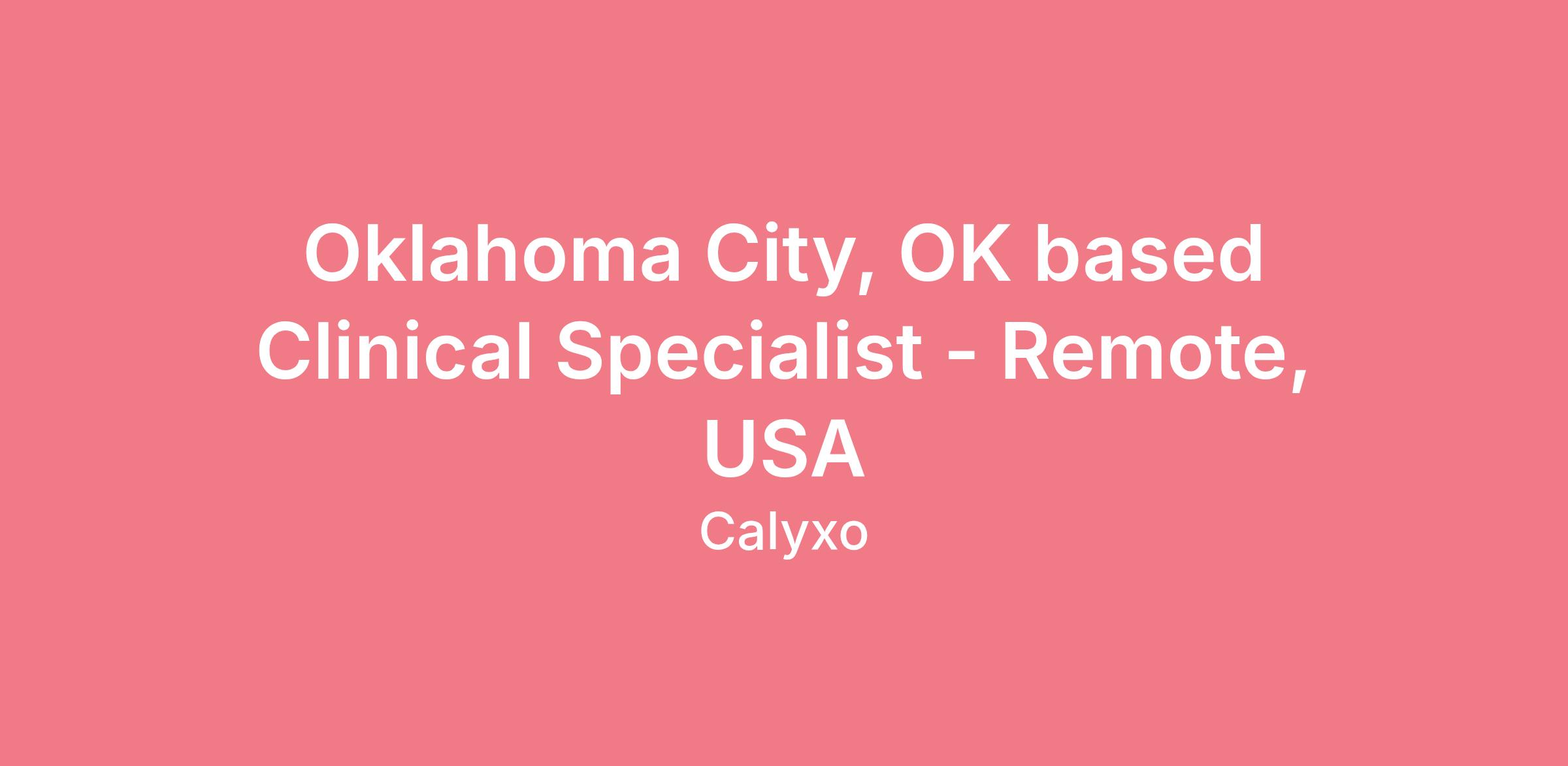 Oklahoma City, OK based Clinical Specialist - Remote, USA