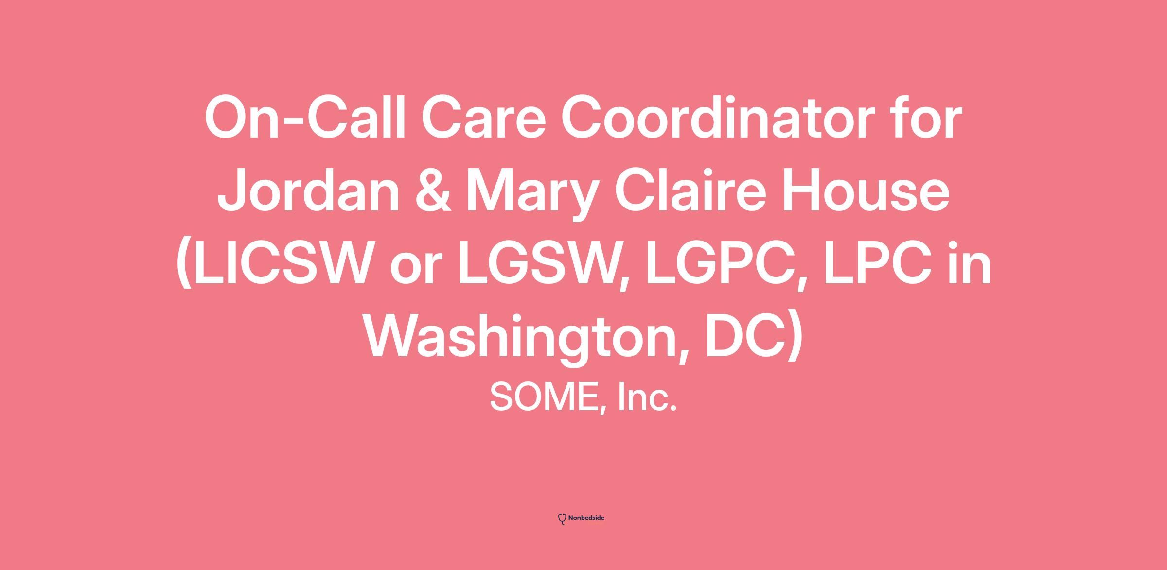SOME (So Others Might Eat) is seeking a Care team member (Therapist or Clinician) to work as needed to support the residents of Jordan House & Mary Claire House