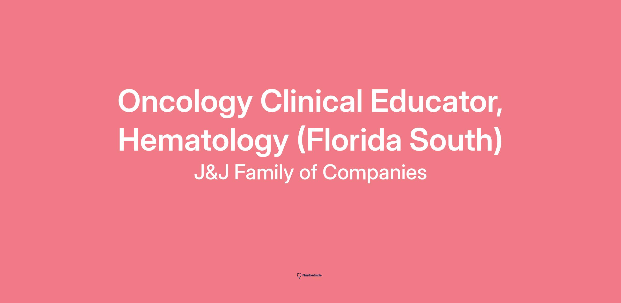 Johnson & Johnson Innovative Medicine is recruiting for an Oncology Clinical Educator, Hematology, located in the Florida South (Sarasota, Ft. Myers, Miami, Ft. Lauderdale, & Melbourne) territory.