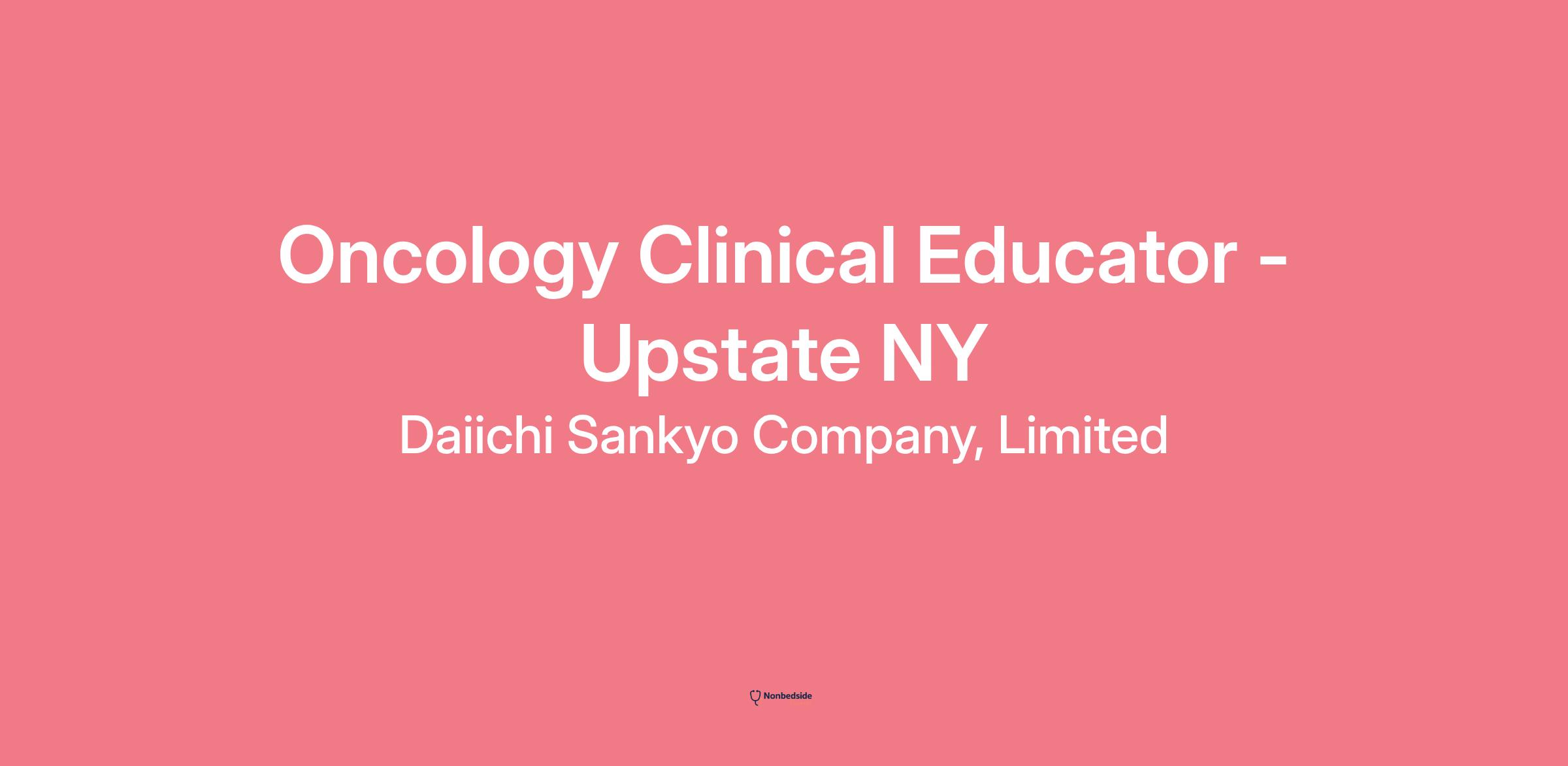 Oncology Clinical Educator - Upstate NY page is loaded## Oncology Clinical Educator - Upstate NYremote type: Remotelocations: Albany, NYtime type: Full timeposted on: Posted Todayjob requisition id: R4420**Join a Legacy of Innovation 125 Years and Counting!**Daiichi Sankyo Group is dedicated to the creation and supply of innovative pharmaceutical therapies to improve standards of care and address diversified, unmet medical needs of people globally by leveraging our world-class science and technology. With more than 125 years of scientific expertise and a presence in more than 20 countries, Daiichi Sankyo and its 18,000 employees around the world draw upon a rich legacy of innovation and a robust pipeline of promising new medicines to help people. In addition to a strong portfolio of medicines for cardiovascular diseases, under the Group’s 2025 Vision to become a “Global Pharma Innovator with Competitive Advantage in Oncology,” Daiichi Sankyo is primarily focused on providing novel therapies in oncology, as well as other research areas centered around rare diseases and immune disorders.**Summary:**The Oncology Clinical Educator role provides disease state, REMS, and product safety education and training to key healthcare providers within Oncology clinics, and health care providers (HCPs) in both the hospital and clinic/office setting. The individual will work within a specified region to enhance disease, REMS, and product safety knowledge, coordinate and provide staff training, and enhance proper administration. The Oncology Clinical Educator (OCE) role is a position that is field based and is comprised of nurses working under the general direction of the Regional Director of Clinical Nurse Managers. The OCE is responsible for educating HCPs/clinics with infusion and related education for prescribed DSI products. The OCE serves as the disease state and product safety expert for their assigned territories. The OCE serves as a resource to clinical leaders by identifying disease state, REMS, and product safety educational needs of staff and implements programs to fulfill knowledge gaps. This collaborative approach will serve to provide education and enhanced clinical care. The OCE is bound by the product label for all educational efforts, and in the interaction with non-commercial counterparts. Excellent organizational, creative and analytical problem solving, communication, and presentation and skills are required. This individual must be flexible and adaptable to new and constant changing situations.**Responsibilities:*** Provides education to health care professionals about disease states and REMS and product safety information for specified DSI products in the medical community within an assigned geographical area in accordance with DSI general direction and policy, focused on the assigned targeted segments (i.e: Hematology/Oncology, Gastroenterology, Nephrology, Hospital Pharmacy, OB/GYN and Cardiology).* Develops strong, long-term relationships with clinical personnel* Ensures appropriate and compliant utilization of product and disease state education as it relates to DSI products.* Executes disease state educational presentations and on label product safety presentations for in-office/in-hospital educational programs to customers that are guided and designed to address clinical knowledge or product gaps.* Must be able to educate and use multiple approaches to explain complex and difficult material and use experiences to illustrate ideas and facilitate understanding while maintaining the ability to stimulate customer interest.* Collaborates to identify and strategizes on how to best educate customers.* Develops and executes geographical based strategic and tactical plans to meet targeted customer needs.* Monitor, collect, and communicate to the Director, Clinical Nurse Manager on customer insights regarding their need for information regarding disease state, REMS and safety information with respect to DSI marketed products.* Collaborate with managed care counterparts or MSLs to provide ongoing clinical updates that are impacted by reimbursement and/or clinical guidelines.* Identifies and contributes to the development of nursing/HCP specific materials to fulfill customer needs to include, but not limited to, patient educational aids, product reference aids and slide deck content topics.**Qualifications:** Successful candidates will be able to meet the qualifications below with or without a reasonable accommodation.*Education Qualifications (from an accredited college or university)** Bachelor's Degree or RN. If RN, must have an active RN License but does not have to hold a license in the state(s) assigned required*Experience Qualifications** 4 or More Years in the pharmaceutical industry preferred, ideally Hematology/Oncology, Nephrology, and Gastroenterology or relevant experience required* Experience with anemia management strongly preferred and infusion nursing experience preferred* Ability to travel up to 90% within geography and to required meetings.* Must have a valid driver's license with a driving record that meets company requirements*Licenses and Certifications** RN - Registered Nurse - State Licensure and/or Compact State Licensure The ideal candidate will be a Registered Nurse with previous relevant clinical as well as pharmaceutical industry experience calling on different levels of the health care providers (HCPs) in both the hospital and clinic/office setting required**Compensation and seniority level/title based on experience and qualifications.***Daiichi Sankyo, Inc. is an equal opportunity/affirmative action employer. Qualified applicants will receive consideration for employment without regard to sex, gender identity, sexual orientation, race, color, religion, national origin, disability, protected veteran status, age, or any other characteristic protected by law.***Salary Range:**$140,480.00 - $210,720.00At the heart of Daiichi Sankyo, Inc. is the fundamental