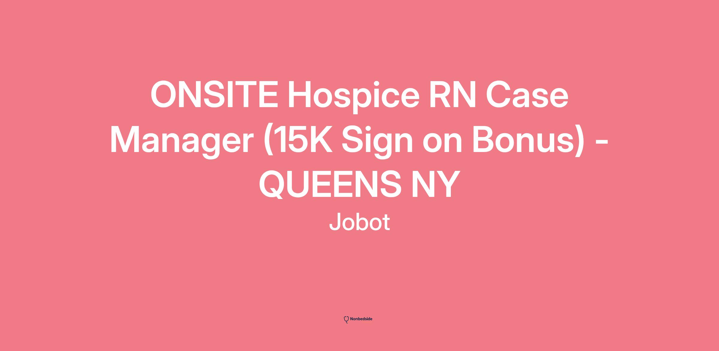 ONSITE Hospice RN Case Manager (15K Sign on Bonus) - QUEENS NY New Want to learn more about this role and Jobot? Click our Jobot logo and follow our LinkedIn page!